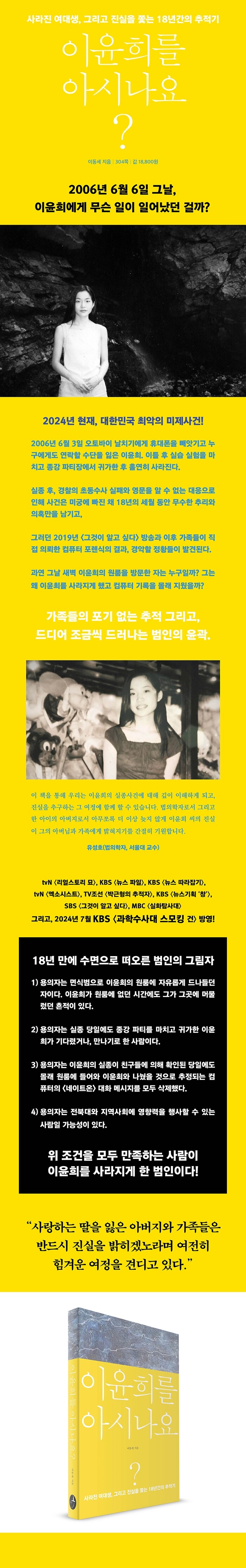 ÀÌ Ã¥À» ÅëÇØ ¿ì¸®´Â ÀÌÀ±ÈñÀÇ ½ÇÁ¾»ç°Ç¿¡ ´ëÇØ ±íÀÌ ÀÌÇØÇÏ°Ô µÇ°í, Áø½ÇÀ» Ãß±¸ÇÏ´Â ±× ¿©Á¤¿¡ ÇÔ²² ÇÒ ¼ö ÀÖ½À´Ï´Ù. ¹ýÀÇÇÐÀڷμ ±×¸®°í ÇÑ ¾ÆÀÌÀÇ ¾Æ¹öÁö·Î¼ ¾Æ¹«ÂÉ·Ï ´õ ÀÌ»ó ´ÊÁö ¾Ê°Ô ÀÌÀ±Èñ ¾¾ÀÇ Áø½ÇÀÌ ±×ÀÇ ¾Æ¹ö´Ô°ú °¡Á·¿¡°Ô ¹àÇôÁö±â¸¦ °£ÀýÈ÷ ±â¿øÇÕ´Ï´Ù.
