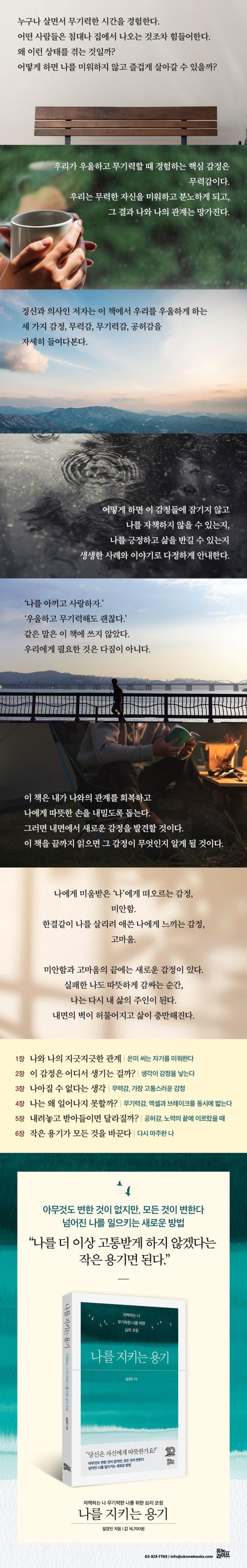 ÀÌ Ã¥Àº ÀúÀÚÀÇ ÀÌ·± °æÇè°ú °í¹ÎÀ» ´ãÀº °á½ÇÀÌ´Ù. ÀÌ Ã¥¿¡¼ ÀúÀÚ´Â ¿ì¸®¸¦ ¿ì¿ïÇÏ°Ô ÇÏ´Â ¼¼ °¡Áö °¨Á¤, ¹«·Â°¨, ¹«±â·Â°¨, °øÇã°¨À» »ó¼¼È÷ µé¿©´Ùº»´Ù. ¾î¶»°Ô Çϸé ÀÌ °¨Á¤µé¿¡ Àá±âÁö ¾Ê°í ³ª¸¦ ÀÚÃ¥ÇÏÁö ¾ÊÀ» ¼ö ÀÖ´ÂÁö, ³ª¸¦ ±àÁ¤ÇÏ°í »îÀ» ¹Ý±æ ¼ö ÀÖ´ÂÁö »ý»ýÇÑ »ç·Ê¿Í À̾߱â·Î ´ÙÁ¤ÇÏ°Ô ¾È³»ÇÑ´Ù.