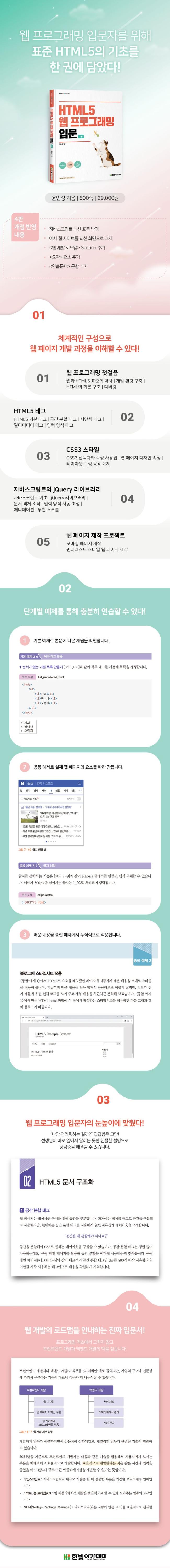 À¥ ÇÁ·Î±×·¡¹ÖÀ» ½ÃÀÛÇÏ´Â ÀÔ¹®ÀÚ¸¦ À§ÇÑ ½Ç½À¼´Ù. ´Ü°èº° ¿¹Á¦¸¦ µû¶ó Çϸç HTML5, CSS3, ÀÚ¹Ù½ºÅ©¸³Æ®ÀÇ ±âÃʸ¦ ÀÍÈ÷°í jQuery¿Í ½Ç¹«¿¡¼ ¾²ÀÌ´Â ´Ù¾çÇÑ Ç÷¯±×ÀÎÀ» °æÇèÇÒ ¼ö ÀÖ´Ù. 4ÆÇ¿¡¼´Â ÇöÀç Ç¥ÁØ¿¡ ¸Âµµ·Ï ÀϺΠÄڵ带 ¼öÁ¤Çß°í ¿¹½Ã·Î º¸¿©ÁÖ´Â À¥ »çÀÌÆ®ÀÇ ¾÷µ¥ÀÌÆ®¸¦ ¹Ý¿µÇß´Ù. À¥ °³¹ßÀÚ¸¦ ²Þ²Ù´Â µ¶ÀÚ´Â 14Àå ¸»¹Ì¿¡ Ãß°¡µÈ °³¹ßÀÚ ·Îµå¸ÊÀ» Âü°íÇÏ¿© ½ÉÈÇнÀÀ» ÇÒ ¼ö ÀÖ´Ù.