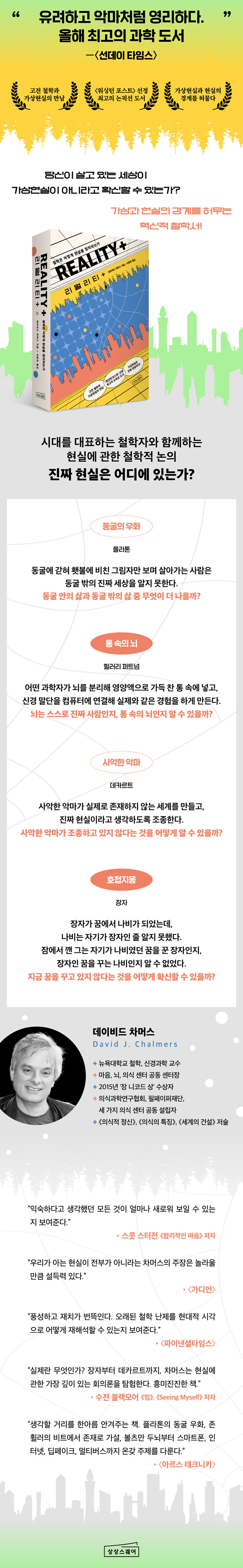 ¿À´Ã³¯ °¡»óÇö½Ç, ¸ÞŸ¹ö½º, ÀΰøÁö´É°ú °°Àº ±â¼úÀÌ ÀÏ»ó¿¡ ±íÀÌ µé¾î¿À¸é¼ ¿ì¸®ÀÇ »î°ú Çö½Ç¿¡ ´ëÇÑ ÀνÄÀ» ±Ùº»ÀûÀ¸·Î ¹Ù²Ù°í ÀÖ´Ù. ÀÌ Ã¥Àº »õ·Î¿î ±â¼úÀÌ Çö½ÇÀ» ¾î¶»°Ô ¹Ù²Ù´ÂÁö¿¡ ´ëÇØ¼µµ ±íÀÌ ÀÖ°Ô Å½±¸ÇÑ´Ù. öÇÐÀû »çÀ¯¸¦ ÅëÇØ °¡»óÇö½Ç°ú Çö½ÇÀÇ °æ°è¸¦ ÀÌÇØÇϰí, ±× ¼Ó¿¡¼ ÀÇ¹Ì ÀÖ´Â »îÀÇ ¹æÇâÀ» ã°íÀÚ ÇÏ´Â ¸ðµç À̵鿡°Ô »õ·Î¿î °¡´É¼ºÀ» Á¦½ÃÇÑ´Ù.