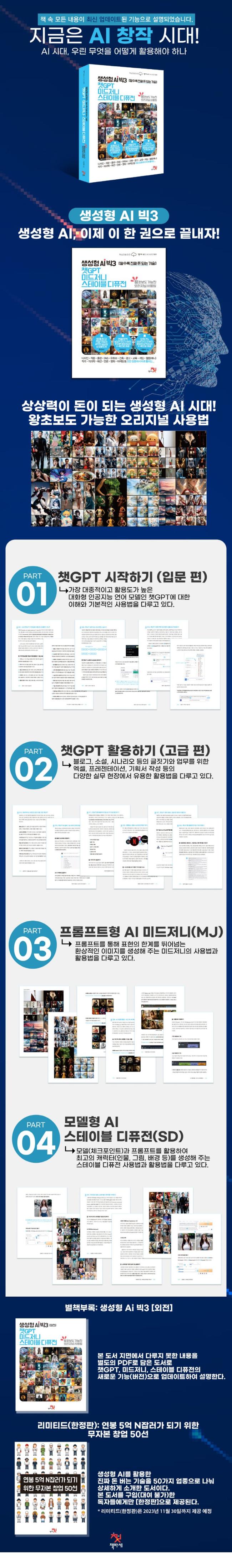 º»¹® 608ÆäÀÌÁö + º°Ã¥ºÎ·Ï(¿ÜÀü) 360ÆäÀÌÁö, »ý¼ºÇü AIÀÇ »õ·Î¿î ¸ðµç °ÍÀ» ´ãÀº Ã¥À¸·Î ½ÃÁß¿¡ Ãâ°£µÈ Ã¥µµ, ¾ÕÀ¸·Î Ãâ°£µÉ Ã¥¿¡¼µµ ¾øÀ» AI ½Ã´ë¸¦ À̲ø¾î °¡´Â êGPT¡¤¹ÌµåÀú´Ï¡¤½ºÅ×ÀÌºí µðÇ»ÀüÀ» ÇÑ ±ÇÀ¸·Î ¿Ïº®ÇÏ°Ô ¸¶½ºÅÍÇÒ ¼ö ÀÖ´Â À¯ÀÏÇÑ Ã¥ÀÌ´Ù.