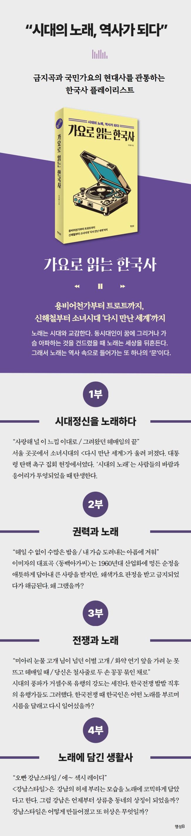 ¡¶°¡¿ä·Î Àд Çѱ¹»ç¡·´Â Çѱ¹ÀÎÀÌ »ç¶ûÇÑ ¡®³ë·¡¡¯¸¦ Áß½ÉÀ¸·Î Çѱ¹»ç¸¦ µé¿©´Ùº»´Ù. ¿ëºñ¾îõ°¡ µî °í´ë°¡¿äºÎÅÍ ¹ÎÁ·ÀÇ ÀÀ¾î¸®¸¦ ÀÀÁýÇÑ ¡®¾Æ¸®¶û¡¯, ÀüÀï ¼ÓÀÇ Àΰ£¼ºÀ» ´ã¾Ò´ø ¡®±»¼¼¾î¶ó ±Ý¼ø¾Æ¡¯, 7~80³â´ëÀÇ ¹ÎÁß°¡¿ä¿Í 2000³â´ë kÆË¿¡ À̸£±â±îÁö ½Ã´ëÀÇ ¼û°á°ú ¸Æ¹ÚÀ» µå·¯³½ °¡¿ä¸¦ ÅëÇØ ¿ª»ç¸¦ ޱ¸ÇÑ´Ù. ¾Æ¿ï·¯ ±ÝÁö°î°ú ±º±¹°¡¿ä µî ³ë·¡°¡ Ç̹ڹްí ÀÌ¿ë´çÇÑ ¾îµÎ¿î ¸éµµ ÇÔ²² »ìÇÉ´Ù.