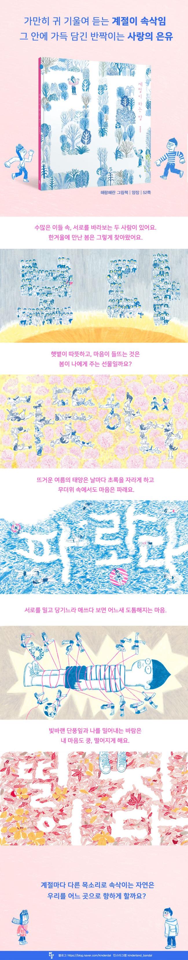 ¹Ýº¹µÈ Àϻ󿡼 ¶°¿Ã¸®´Â ¾Æ·ÃÇÑ Ãß¾ï ÇÑ Á¶°¢Àº ½º½º·³¾øÀÌ °¡½¿À» Àû½Ã´Â ¹è°æÀ½¾Çó·³ ¸¶À½À» ¹Ý¦ ¼³·¹°Ô ÇÕ´Ï´Ù. ÀÛ°¡´Â °èÀý¸¸ÅÀ̳ª º¯È¹«½ÖÇÑ »îÀÇ ½Ã½Ã°¢°¢À» ÇÔÃàÀûÀÎ ¹®Àå°ú À̹ÌÁö·Î Ç¥ÇöÇÕ´Ï´Ù. ÇѱÛÀÇ ÇüÅÂÀû Ư¼ºÀ» »ì·Á ¾Æ¸§´ä°Ô ±×·ÁÁø °¢°¢ÀÇ ´Ü¾îµéÀº ÀÌ ±×¸²Ã¥ÀÇ µ¶Æ¯ÇÑ ¸Å·ÂÀ» ÇÑÃþ µ¸º¸ÀÌ°Ô ÇÕ´Ï´Ù. ¶Ç ¼¼½ÉÇÏ°Ô ±×·ÁÁø ͏®±×·¡ÇÇ¿Í ¾Æ¸§´ä°Ô ä¿öÁø »öä´Â ½Ì±×·¯¿î »ç¶û°ú Ãß¾ïÀÇ ¼»ç¸¦ ¿Ïº®ÇÏ°Ô º¸¿© ÁÝ´Ï´Ù. ´©±º°¡¿¡°Ô´Â ¾Æ·ÃÇÑ Ãß¾ïÀ» ¶°¿Ã¸®°Ô Çϰí, ´©±º°¡¿¡°Ô´Â À§·Î°¡ µÉ ÀÌ ±×¸²Ã¥Àº ¿Ü·Î¿ü´ø ¿ì¸®ÀÇ ¸¶À½À» ¼¼È÷ ¹°µéÀÔ´Ï´Ù. °èÀýÀÌ ÇÏ´Â ´ÙÁ¤ÇÑ ¼Ó»èÀÓ¿¡ ±Í ±â¿ï¿© º¸¼¼¿ä. ¿ì¸® ¸ðµÎ¿¡°Ô ºÒ¾î¿Ã µû½ºÇÑ º½¹Ù¶÷À» ±â´Ù¸®¸é¼ ¸»ÀÌÁÒ.