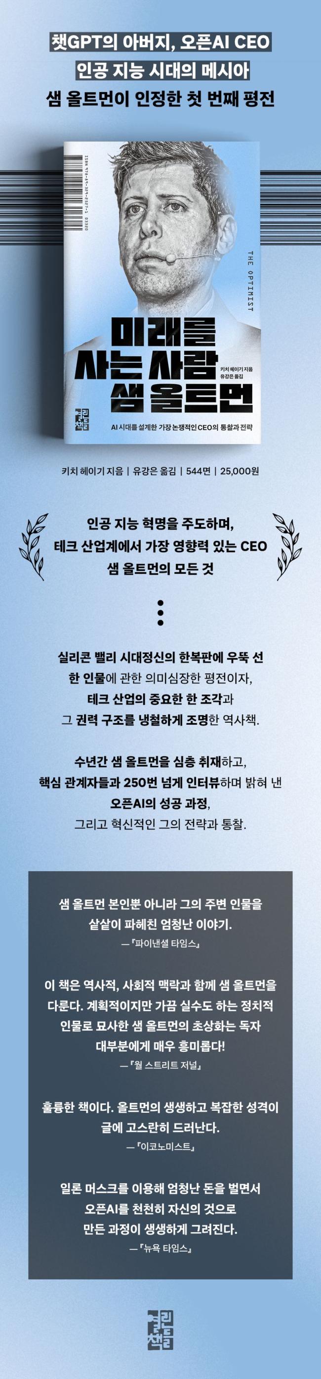 »ù ¿ÃÆ®¸ÕÀº 19¼¼¿¡ óÀ½ ½ºÅ¸Æ®¾÷ CEO°¡ µÇ¾úÀ¸¸ç, º¥Ã³ ÅõÀÚ°¡·Î¼ Y ÄÞºñ³×ÀÌÅÍÀÇ ´ëÇ¥·Î ÀÏÇÏ¸ç ¼öõ °³ÀÇ ±â¼ú ±â¾÷À» Ű¿ö ³Â°í, ´ëÈÇü Àΰø Áö´É ¼ºñ½º êGPT¸¦ Ãâ½ÃÇÏ¿© ¿ì¸®ÀÇ ÀÏ»óÀ» ÇѼø°£¿¡ Áøº¸½ÃŲ À庻ÀÎÀÌ´Ù. Àΰø Áö´É ¿Ü¿¡µµ ÇÙÀ¶ÇÕ ±â¼ú, Å»¸ð µî Àηù ¹Ì·¡¸¦ ´Ù·ç´Â ½ºÅ¸Æ®¾÷¿¡ ¾Æ³¦¾ø´Â Áö¿øµµ º£Ç®°í ÀÖ´Ù. ¼º°øÇÑ °æ¿µÀÚÀÇ °³ÀÎÀûÀÎ È÷½ºÅ丮ÀÌÁö¸¸ Áö±ÝÀº »ç¶óÁø ¼ö¸¹Àº ½ºÅ¸Æ®¾÷ ±â¾÷ ¼Ó¿¡¼µµ ¿ÀÇÂAI°¡ ¼º°øÇÑ ¿øÀÎ, ¶ÇÇÑ ±×¸¦ ³»ÂÑÀ¸·Á°í Çß´ø ÀÌ»çȸ¸¦ ¿ÀÈ÷·Á ¹°¸®Ä¡°í 700¿© ¸íÀÇ Á÷¿øÀÌ ÁöÁöÇßÀ» Á¤µµ·Î ¶Ù¾î³ ¿ÃÆ®¸ÕÁÖÀÇ½Ä °æ¿µ, â¾÷°¡°¡ °®Ãç¾ß ÇÒ ¿ª·®°ú ¼ÒÅë ´É·Â, ÅõÀÚÀڷμ ÀλçÀÌÆ®¸¦ ¾ò´Â ¹ý µî ÀÏÇÏ´Â ¹æ½ÄÀÌ Èï¹ÌÁøÁøÇÏ°Ô ¼¼úµÇ¾î ÀÖ´Ù. °Ô´Ù°¡ Âü°íÇÒ ¸¸ÇÑ ½ºÅ¸Æ®¾÷ µÞÀ̾߱â´Â ½ÇÁ¦ °æÇèÀÚµéÀÌ ¼ÖÁ÷ÇÏ°Ô ´äÇ߱⿡ ´Ù¸¥ °÷¿¡¼ º¼ ¼ö ¾ø´Â ¿©·¯ ºòÅ×Å© ±â¾÷°¡ÀÇ ¼ÒÁßÇÑ ¿µ°¨µµ ´ã¾Ò´Ù. ¹«¾ùº¸´Ù <¹Ì·¡´Â ´õ ³ª¾ÆÁú °Å>¶ó´Â ¿ÃÆ®¸ÕÀÇ ³«°üÁÖÀÇÀû »ç°í¹æ½ÄÀº ±â¾÷°¡ ¿µ¿ªÀ» ³Ñ¾î °³ÀÎÀû »îÀÇ Ã¶ÇÐÀ¸·Îµµ ¿¬°áµÈ´Ù. ±×·¸±â¿¡ »ù ¿ÃÆ®¸ÕÀÌ º¸¿© ÁÖ´Â Àü·«°ú ÅëÂû¿¡¼ ¿ì¸® ¿ª½Ã ¿ì¸® »îÀ» ¾î¶»°Ô °æ¿µÇÏ°í ¿î¿µÇÒÁö ±× ÇØ´äÀ» ¾òÀ» ¼ö ÀÖÀ» °ÍÀÌ´Ù.