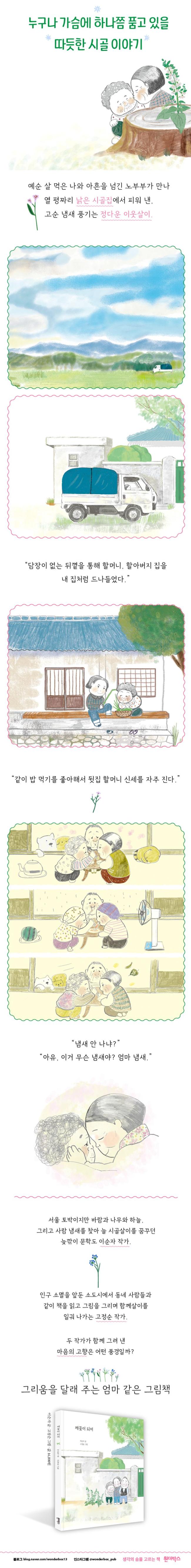 ¸öÀº µµ½Ã¿¡ ÀÖÁö¸¸, ¸¶À½Àº ´Ù¸¥ °÷À» ²Þ²Ù´Â »ç¶÷µéÀÌ ÀÖ½À´Ï´Ù. µµ½ÃÀÇ ³ÃÁ¤ÇÑ ¾ó±¼ ¾Õ¿¡¼ ¿òÃ÷·¯µé°í ÁöÄ£ ±×µéÀÇ ¸¶À½¿£ Á¤ ºÙÀÌ°í ½¯ °÷, ¸¶À½ÀÇ °íÇâÀÌ Àý½ÇÇÕ´Ï´Ù. ¼¿ï Åä¹ÚÀÌÁö¸¸ °¿øµµ Æòâ¿¡ ¿ ÆòÂ¥¸® ¹«Çã°¡ ÁýÀ» ¸¶·ÃÇÑ À̼øÀÚ ÀÛ°¡µµ ±×Áß ÇÑ ¸íÀ̾ú´ø °Í °°½À´Ï´Ù. Èë°¡·ç ³¯¸®´Â 50³â ³ÑÀº °í¿ÁÀ» Áý°ªÀÇ ¼¼ ¹è¸¦ µé¿© ¾ûµ¢ÀÌ ºÙÀÏ ¸¸ÇÏ°Ô ¼Õº¸°í ½ÃÀÛÇÑ ½Ã°ñ»ìÀÌ. ÀÛ°¡´Â À̰÷¿¡¼ ¶æ¹ÛÀÇ Àο¬À» ¸¸³³´Ï´Ù. ¹Ù·Î µÞÁý¿¡ »ç´Â ¾ÆÈçÀ» ³Ñ±ä ³ëºÎºÎÀÔ´Ï´Ù. ±×¸²Ã¥ÀÇ ¿øÀÛÀÎ ¡¸ÀºÇ೪¹« ±×·çÅͱ⿡ ±ú²É ÇǾú³×¡¹´Â 2022³â ¼Á¡ÀÎÀÌ »ÌÀº ¿ÃÇØÀÇ Ã¥ ¡º¿¹¼ø »ì, ³ª´Â ¶Ç ±ú²ÉÀÌ µÇ¾î¡»ÀÇ ´ëÇ¥ÀÛÀ¸·Î, ÀÛ°¡¿Í ³ëºÎºÎ°¡ ½Ã°ñÁý¿¡¼ ¿«¾î ³½ °í¼ø ³¿»õ dz±â´Â Á¤´Ù¿î ÀÌ¿ô»ìÀ̸¦ ±×¸®°í ÀÖ½À´Ï´Ù. ¿ì¸®µéÀÌ °¡½¿¼Ó¿¡ ǰ°í Áö³»´Â ¸¶À½ÀÇ °íÇâÀº ÀÌ·± dz°æÀÌ ¾Æ´Ò±î ÇÏ°í »ý°¢ÇÏ°Ô ÇÏ´Â, ±í°í ±íÀº Á¤ÀÌ ´ã±ä ±ÛÀÔ´Ï´Ù.