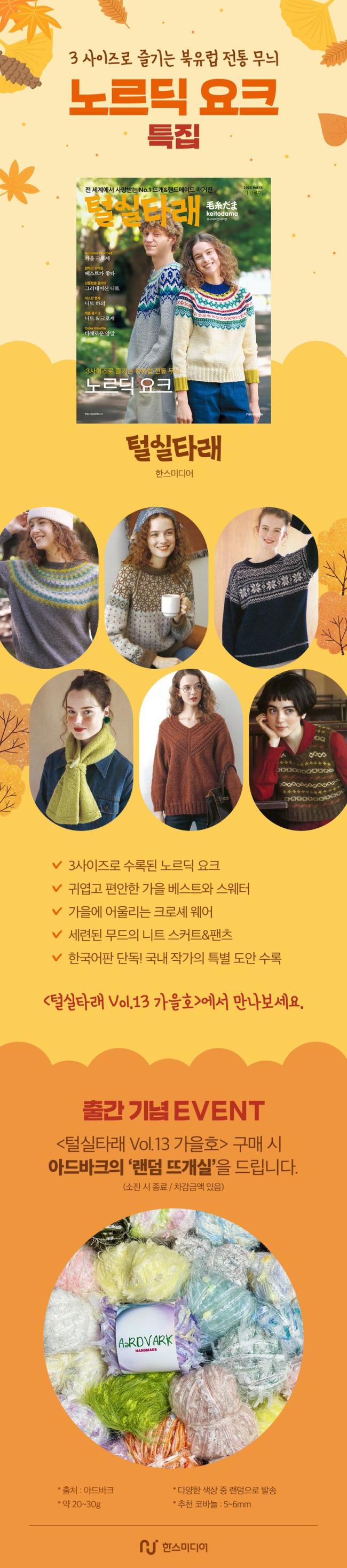 ¡´ÅнÇŸ·¡¡µ´Â ÇöÀç Àü ¼¼°è¿¡¼ Å« »ç¶ûÀ» ¹Þ°í ÀÖ´Â ÃÖ°íÀÇ ¶ß°³ & ÇÚµå¸ÞÀ̵å ÀâÁöÀÔ´Ï´Ù. Áö³ ¼ö½Ê ³â °£ ¶ß°³ Àü¹®±â¾÷ ÀϺ»º¸±×»ç¿¡¼ ¸Å °èÀý(º½, ¿©¸§, °¡À», °Ü¿ï)¸¶´Ù ¹ß°£Çؿ ¼ö¿¹ Àü¹®Áö·Î, Áö³ 2022³â °¡À»È£¸¦ ½ÃÀÛÀ¸·Î °ø½Ä Çѱ¹¾îÆÇÀ» Ãâ°£Çϰí ÀÖ½À´Ï´Ù. À̹ø È£ÀÇ ÁÖÁ¦´Â ¡®³ë¸£µñ ¿äÅ©¡¯·Î °¡À»¿¡ ¾È¼º¸ÂÃãÀÎ ¿äÅ©¿¡ Æ÷ÀÎÆ®°¡ ÀÖ´Â ¸Å·ÂÀûÀÎ ´ÏÆ®¸¦ ¼Ò°³ÇÕ´Ï´Ù. ºÏÀ¯·´ ÀüÅë ¹«´Ì¸¦ ¸¶À½²¯ Áñ±æ ¼ö ÀÖµµ·Ï 3°¡Áö »çÀÌÁî¿Í »ö±òÀ» ¹Ù²Û ÆÐÅϵµ Á¦¾ÈÇßÀ¸´Ï ¸¶À½¿¡ µå´Â ÀÛǰÀ» ã¾Æ ¿äÅ©ÀÇ ¸Å·Â¿¡ ºüÁ®º¸¼¼¿ä. ÀÌ¿Í ´õºÒ¾î ´ÏÅÍÀÇ °èÀý, °¡À»¿¡ ¸ÂÃß¾î Ŭ·¡½ÄÇÑ ¸Å·ÂÀÇ Å©·Î¼Î ´ÏÆ®¿Í ÆíÇÏ°í ±Í¿©¿ì¸é¼ °¡À» ½ºÅ¸Àϸµ¿¡ Âû¶±ÀÎ º£½ºÆ®±îÁö ¾ËÂ÷°Ô ¼Ò°³ÇÕ´Ï´Ù. À̿ܿ¡µµ Çѱ¹¾îÆÇ¸¸ÀÇ Æ¯º°ÇÑ µµ¾Èµµ ¼ö·ÏÇßÀ¸´Ï ³õÄ¡Áö ¸¶¼¼¿ä.