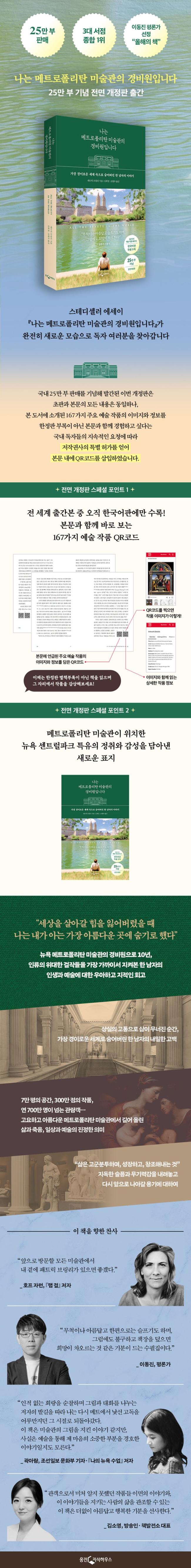 ±¹³» 25¸¸ ºÎ ÆÇ¸Å¸¦ ±â³äÇØ Á¦ÀÛµÈ À̹ø °³Á¤ÆÇÀº ÃÊÆÇ°ú º»¹®ÀÇ ¸ðµç ³»¿ëÀº µ¿ÀÏÇϳª, ÀúÀÚ°¡ ¾ð±ÞÇÑ 167°¡Áö ¿¹¼ú ÀÛǰÀ» ºÎ·ÏÀÌ ¾Æ´Ñ º»¹®¿¡¼ °¨»óÇÏ°í ½Í´Ù´Â ±¹³» µ¶ÀÚµéÀÇ Áö¼ÓÀûÀÎ ¿äûÀ» ¹Ý¿µÇß´Ù. ±×µ¿¾È °¢ ÀÛǰÀÇ °íÇØ»óµµ À̹ÌÁö¿Í ÇÙ½É Á¤º¸¸¦ ´ãÀº QRÄڵ带 ÇÑÁ¤ÆÇ Ưº°ºÎ·ÏÀ¸·Î¸¸ Á¦°øÇØ¿ÔÀ¸³ª ÀÌÁ¦´Â º»¹® ÇÏ´Ü¿¡ »ðÀÔÇØ ´©±¸µç Ã¥À» ÀÐÀ¸¸ç ±× ÀÚ¸®¿¡¼ ¿¹¼ú ÀÛǰÀ» °¨»óÇÒ ¼ö ÀÖ°Ô ÇÑ °ÍÀÌ´Ù. ÀÌ´Â ÀúÀ۱ǻçÀÇ Æ¯º° Çã°¡¸¦ ¾ò¾î ÀÌ·ç¾îÁø °ÍÀ¸·Î, Àü ¼¼°è ¿©·¯ ¹ø¿ªº» Áß ¿ÀÁ÷ Çѱ¹¾îÆÇ¿¡¸¸ ½ÃµµµÈ ÀÌ·ÊÀûÀÎ °æ¿ì´Ù.
