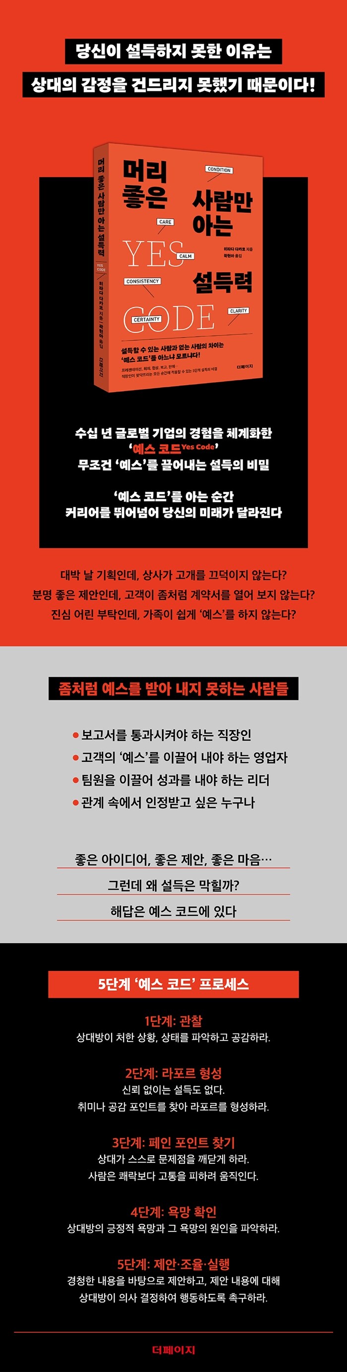°á±¹ ÀÌ Ã¥ÀÌ ´øÁö´Â ¸Þ½ÃÁö´Â ´Ü¼øÇÏ´Ù. ´õ ¸¹Àº ³í¸®¸¦ ÁغñÇÒ ÇÊ¿ä´Â ¾ø´Ù. ´õ ¸¹Àº º¸°í¼¸¦ ½á ³¾ Çʿ䵵 ¾ø´Ù. »ó´ëÀÇ °¨Á¤À» ¿òÁ÷ÀÌ°í ½Å·Ú¸¦ ½×´Â´Ù¸é, ¿øÇÏ´Â ¡®¿¹½º¡¯¸¦ ¾ò´Â °ÍÀº »ý°¢º¸´Ù ½¬¿î ÀÏÀÌ µÉ °ÍÀÌ´Ù. ¼³µæ·ÂÀÌ Ä¿¸®¾î¸¦ ¹Ù²Ù°í, ¼º°ú¸¦ °áÁ¤ÇÑ´Ù. ³í¸®°¡ ¾Æ´Ñ °¨Á¤, ¹Ù·Î ±× Â÷À̸¦ ±ú´Ý´Â ¼ø°£ ´ç½ÅÀÇ ¼³µæÀº ÀÌ¹Ì ½ÃÀÛµÈ °ÍÀÌ´Ù.