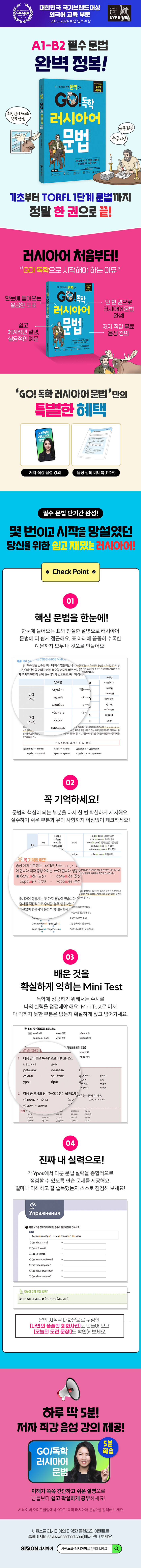 ÀÔ¹®ÀÚµµ ½±°Ô Á¢±ÙÇÒ ¼ö ÀÖÀ¸¸é¼ TORFL 1´Ü°è¿¡ ÇØ´çÇÏ´Â Áß±Þ ¹®¹ý±îÁö, ·¯½Ã¾Æ¾îÀÇ Çٽɿ¡ ÇØ´çÇÏ´Â ¹®¹ýÀ» ºüÁü¾øÀÌ ´ã¾Ò½À´Ï´Ù. ¹®¹ý °ø½ÄµéÀº ÇÑ´«¿¡ µé¾î¿À´Â Ç¥·Î ±ò²ûÇÏ°Ô ¼ö·ÏÇϰí, °¢ °ø½Ä¸¶´Ù ¿¹¹®°ú ÇÔ²² »ó¼¼È÷ Ç®¾î ¼³¸íÇϸç, ±×¶§±×¶§ Áß°£ Á¡°ËÀ» ÇÒ ¼ö ÀÖ´Â Mini Test¿Í ÇÑ °úÀÇ ³»¿ëÀ» ¸ðµÎ ´ã¾Æ Ç®¾î º¸´Â ¿¬½À ¹®Á¦±îÁö ²Ä²ÄÈ÷ ½Ç·ÂÀ» ½×À» ¼ö ÀÖµµ·Ï ±¸¼ºÇß½À´Ï´Ù.