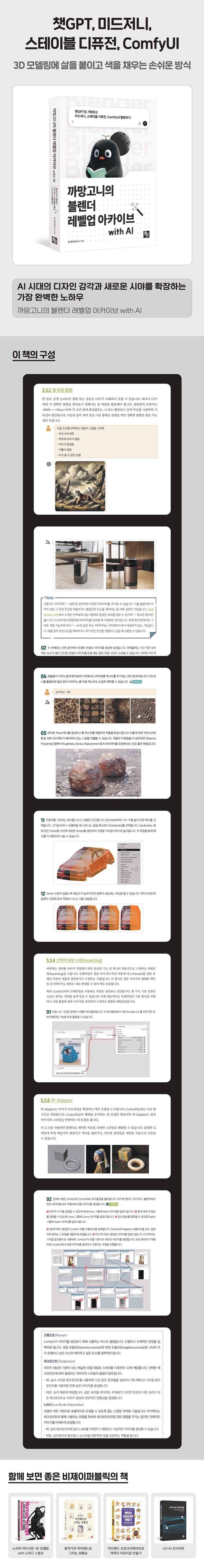 ¹«·á 3D ±×·¡ÇÈ Åø ºí·»´õ(Blender)¿Í ÀΰøÁö´É(AI)ÀÇ °áÇÕÀº µðÅ×ÀÏÀ» º¸°ÇÏ¸ç °íÄ÷¸®Æ¼ ¸ðµ¨¸µ ÀÛ¾÷À» ´õ¿í ½±°Ô ¿Ï¼ºÇÒ ¼ö ÀÖ°Ô ÇÑ´Ù. ÀÌ Ã¥Àº ºí·»´õ ´ÜÀÏ ÅøÀÇ »ç¿ë¹ýÀ» ³Ñ¾î êGPT, ¹ÌµåÀú´Ï, ½ºÅ×ÀÌºí µðÇ»Àü, ComfyUI¿Í ¿¬µ¿ÇØ ¿ÀºêÁ§Æ®, ÀÚ¿¬¹°, ij¸¯ÅÍ, dz°æ, ½Ç³» ÀÎÅ׸®¾î±îÁö ´Ù¾çÇÑ °á°ú¹°À» Á¦ÀÛÇÒ ¼ö ÀÖ´Â ¹æ¹ýÀ» Á¦½ÃÇÑ´Ù.
