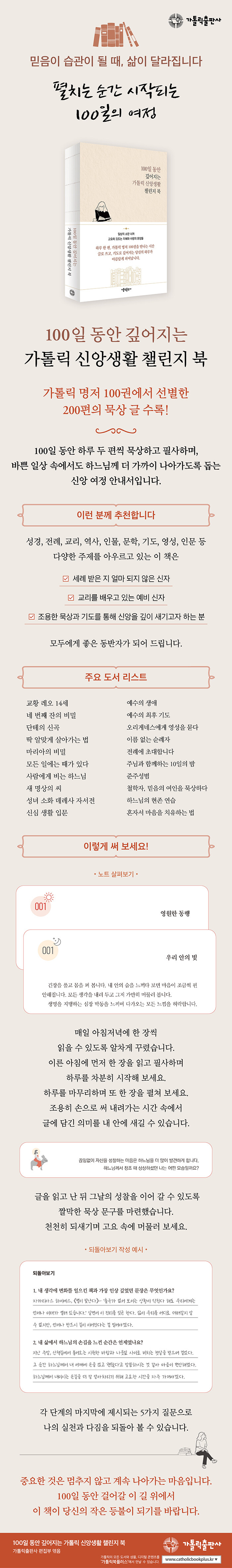 ÀÌ ³ëÆ®´Â ƯÈ÷ ¼¼·Ê¹ÞÀº Áö ¾ó¸¶ µÇÁö ¾ÊÀº ½ÅÀÚ, ¿¹ºñ ½ÅÀÚ, Á¶¿ëÇÑ ¹¬»ó°ú ±âµµ¸¦ ÅëÇØ ½Å¾ÓÀ» ±íÀÌ »õ±â°íÀÚ ÇÏ´Â À̵éÀ» µ½°íÀÚ Ãâ°£µÇ¾ú´Ù. ¸ÅÀÏ ¾ÆÄ§Àú³á, ȤÀº Àá½Ã ¿©À¯°¡ ÀÖÀ» ¶§ ÀÌ Ã¥À» ÆîÄ¡´Â ½Ã°£Àº ÇÏ´À´Ô²² ¸¶À½À» ¿©´Â ½Ã°£ÀÌ µÇ¾î, ½Å¾ÓÀÌ »îÀÇ Áß½ÉÀ¸·Î ÀÚ¸® Àâµµ·Ï À̲ø¾î ÁÙ °ÍÀÌ´Ù. 100ÀÏÀÇ ¿©Á¤À» ÅëÇØ ÇÏ´À´Ô°úÀÇ °ü°è¸¦ ´õ ±íÀÌ ±ú´Ý°í ¹ÏÀ½À» »ýȰ ¼Ó¿¡¼ ½ÇõÇÏ´Â ÈûÀ» ¾òÀ» ¼ö ÀÖ´Ù.