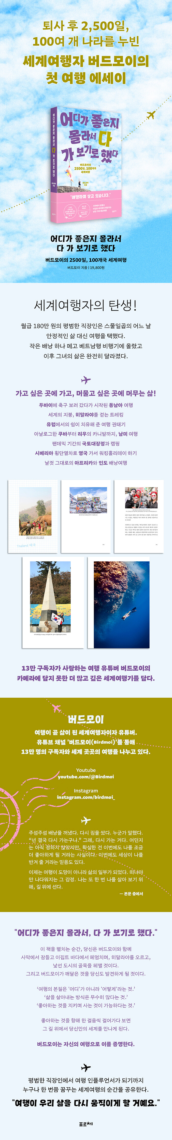 ÇöÀç À¯Æ©ºê ä³Î ¡®¹öµå¸ðÀÌ[Birdmoi]¡¯¸¦ ÅëÇØ 13¸¸ ¸íÀÇ ±¸µ¶ÀÚ¿Í ÇÔ²² ¿©ÇàÀÇ ¼³·½°ú ±ú´ÞÀ½À» ³ª´©°í ÀÖÀ¸¸ç, ¾ÕÀ¸·Îµµ ¼¼»óÀÇ ³¡°ú ½ÃÀÛÀ» ÀÕ´Â ±æ À§¿¡¼ À̾߱⸦ ÀÌ¾î °¥ ¿¹Á¤ÀÌ´Ù.