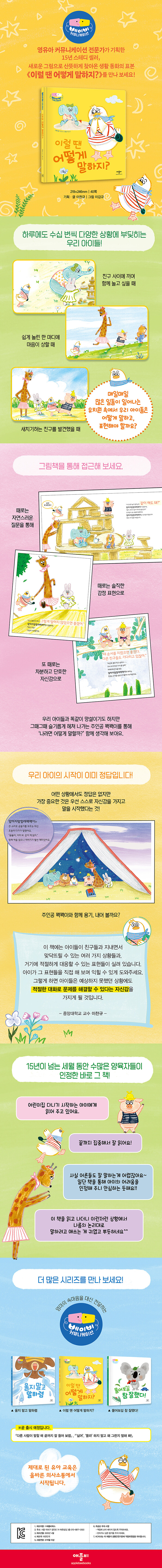 <ÀÌ·² ¶© ¾î¶»°Ô ¸»ÇÏÁö?>´Â ¿ì¸® ¾ÆÀ̵éÀÇ ÀÇ»ç ¼ÒÅë ¹ß´Þ¿¡ µµ¿òÀ» ÁÖ´Â µ¿ÈÀÔ´Ï´Ù. ¾Æ±â ¿À¸® '¸»ÇÏÀÚ¸»ÇÒ·¡²Ð²Ð'À̰¡ óÇÑ ´Ù¾çÇÑ »óȲ ¼Ó¿¡¼ ¾î¶² ´ëÈ·Î ¹®Á¦¸¦ ÇØ°áÇÒ ¼ö ÀÖÀ»Áö ¾Ë·Á ÁÝ´Ï´Ù. ¸ÅÀϸÅÀÏ ÀϾ´Â Àç¹ÌÀÖ´Â ÀÏ, ȳª´Â ÀÏ, ¿ô±ä ÀÏ, ¿ï°í ½ÍÀº ÀÏ µî ¿ì¸® ¾ÆÀ̰¡ ¸¸³ª´Â »óȲÀº ´Ùä·Ó°íµµ ½±Áö ¾Ê½À´Ï´Ù. °¢°¢ÀÇ »óȲ ¼Ó¿¡¼ Àڱ⠻ý°¢À» ¼ÖÁ÷ÇÏ°Ô ¸»Çϰí, Ä£±¸µéÀÇ »ý°¢À» µé¾î ÁÙ ¼ö ÀÖµµ·Ï '¸»ÇÏÀÚ¸»ÇÒ·¡²Ð²Ð'ÀÌÀÇ À̾߱⸦ ¸ÕÀú »ìÆìº¸´Â °ÍÀº ¾î¶³±î¿ä?