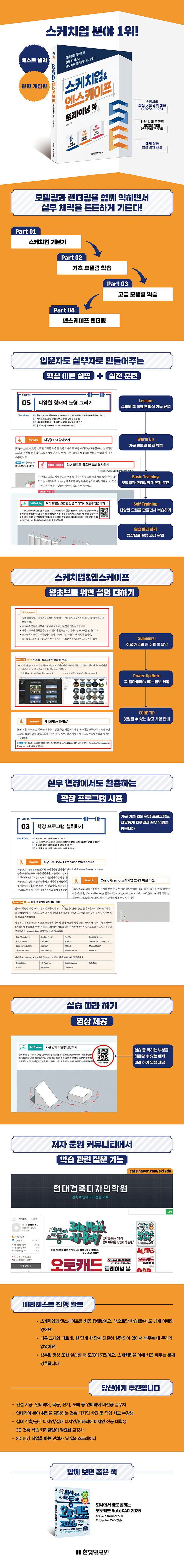 ÀÌ Ã¥Àº ½ºÄÉÄ¡¾÷À» óÀ½ ¹è¿ì·Á´Â »ç¶÷ºÎÅÍ È¨ ÀÎÅ׸®¾î µîÀ» ÇÏ¸ç ¾î´À Á¤µµ ½ºÄÉÄ¡¾÷À» ´Ù·é °æÇèÀÌ ÀÖ´Â »ç¶÷±îÁö ¸ðµÎ ÇнÀÇÒ ¼ö ÀÖ´Ù. ±âº» µµÇüºÎÅÍ ½ÃÀÛÇÏ¿© ½Ç¹«¿¡ Ȱ¿ëÇÏ´Â ÇüÅÂÀÇ °ÇÃà, ÀÎÅ׸®¾î ¸ðµ¨¸µ ¹æ¹ýÀ» »ó¼¼ÇÑ ¼³¸í°ú µû¶ó Çϱ⠰úÁ¤À» ÅëÇØ ¹è¿ï ¼ö ÀÖ´Ù. ½ºÄÉÄ¡¾÷°ú 3D ¸ðµ¨¸µÀÇ ±âÃÊ ¿ø¸®»Ó¸¸ ¾Æ´Ï¶ó °í±Þ ¸ðµ¨¸µ ¹æ¹ý, ¿£½ºÄÉÀÌÇÁ¸¦ Ȱ¿ëÇÑ ·»´õ¸µ ¹æ¹ý±îÁö ½±°Ô ÀÌÇØÇϰí ÇнÀÇϵµ·Ï ±¸¼ºÇÏ¿© Ãʺ¸ÀÚµµ ±Ý¹æ ½Ç¹«ÀÚ ¼öÁرîÁö ²ø¾î¿Ã·ÁÁØ´Ù.