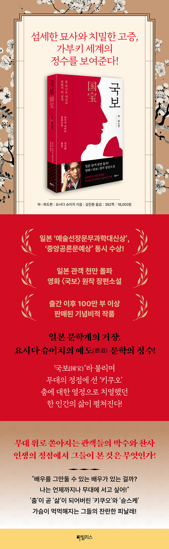 Æò»ýÀÇ ¶óÀ̹úÀÌÀÚ, Ä£ÇüÁ¦ °°Àº ¿ìÁ¤À» ³ª´©´Â ¡®Å°Äí¿À¡¯¿Í ¡®슌½ºÄÉ¡¯ÀÇ ¸¶Áö¸· ¿©Á¤ÀÌ ¡¶±¹º¸¡· Çϱǿ¡¼ ÆîÃÄÁø´Ù. »ó±Ç ¡®Ã»ÃáÆí¡¯°ú Ç챂 ¡¯ÈµµÆí¡¯À» ÅëÇØ ¹è¿ì·Î¼ ´©·È´ø ±×µéÀÇ Âù¶õÇÑ »î°ú, Ãã°ú ¿¬±â¿¡ ´ëÇÑ ±×µéÀÇ ºÒ²É °°Àº ¿Á¤ÀÌ »ý»ýÇÏ°Ô ±×·ÁÁø´Ù. ¡¶±¹º¸¡·´Â ±âÁ¸ÀÇ ¿ä½Ã´Ù ½´ÀÌÄ¡ÀÇ ¹®ÇÐ ¼¼°è¸¦ ¶Ù¾î³Ñ¾î »õ·Î¿î °æÁö¸¦ º¸¿©ÁØ´Ù. ±×´Â ÀÌ ¼Ò¼³À» ÅëÇØ ¡®»î°ú Á×À½¡¯, ¡®Çã¿Í ½Ç¡¯, ¡®³²°ú ¿©¡¯ °°Àº ¼·Î ÀÌÁúÀûÀÎ °ÍÀÌ Çϳª·Î ³ì¾Æµå´Â ¸ùȯÀûÀÎ °¡ºÎŰ ¼¼°èÀÇ ¸Å·ÂÀ» »ç½ÇÀûÀ¸·Î Ç¥ÇöÇØ³½´Ù. ƯÈ÷ ¼Ò¼³ ¼Ó µîÀåÀι°µéÀ» ÅëÇØ ¿¹¼ú°ú ÀλýÀÇ °æÁö¿¡ µµ´ÞÇϰíÀÚ ºÎ´ÜÈ÷ ³ë·ÂÇÏ´Â Àΰ£ÀÇ ¸ð½ÀÀ» Èï¹Ì·Ó°Ô ±×·Á³½´Ù.