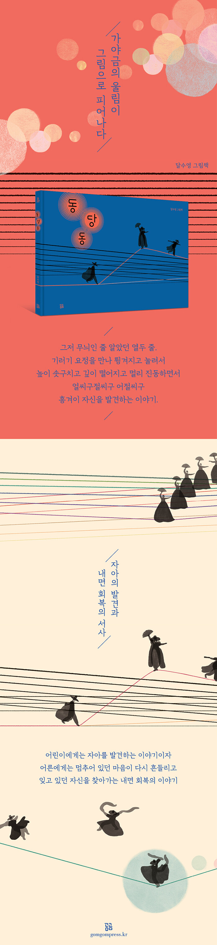 °¡¾ß±ÝÀÇ ¿ï¸²À» ½Ã°¢ÀûÀ¸·Î Ç¥ÇöÇÑ ±×¸²Ã¥. ±×Àú ¹«´ÌÀÎ ÁÙ¸¸ ¾Ë¾Ò´ø °¡¾ß±Ý ¿µÎ ÁÙÀº ±â·¯±â ¿äÁ¤À» ¸¸³ª¸é¼ ÀÚ½ÅÀÇ Á¸À縦 ±ú´Ý°Ô µÈ´Ù. ¹Ì´Ï¸ÖÇÏ°Ô Çü»óÈµÈ Àι°µéÀÌ ¸¸µé¾î ³»´Â ÀüÅë ¿¹¼úÀÇ Ãã»çÀ§¿Í °ðÀº¼±µéÀÌ ¸¸µé¾î ³»´Â Á¶Çü¹Ì°¡ °áÇÕÇÏ¿©, ¸¶Ä¡ ÀÔüÀûÀÎ ¾Çº¸ÀÎ µí ¼Ò¸®¸¦ ½Ã°¢ÈÇÑ´Ù. ¶ÇÇÑ ¾î¸°ÀÌ¿¡°Ô´Â ÀÚ½ÅÀ» ¹ß°ßÇÏ´Â À̾߱âÀÌÀÚ ¾î¸¥¿¡°Ô´Â ¸ØÃß¾î ÀÖ´ø ¸¶À½ÀÌ ´Ù½Ã Èçµé¸®°í Àذí ÀÖ´ø ÀÚ½ÅÀ» ã¾Æ°¡´Â ³»¸é ȸº¹ÀÇ ¼»ç¸¦ ±×·Á ³½´Ù.