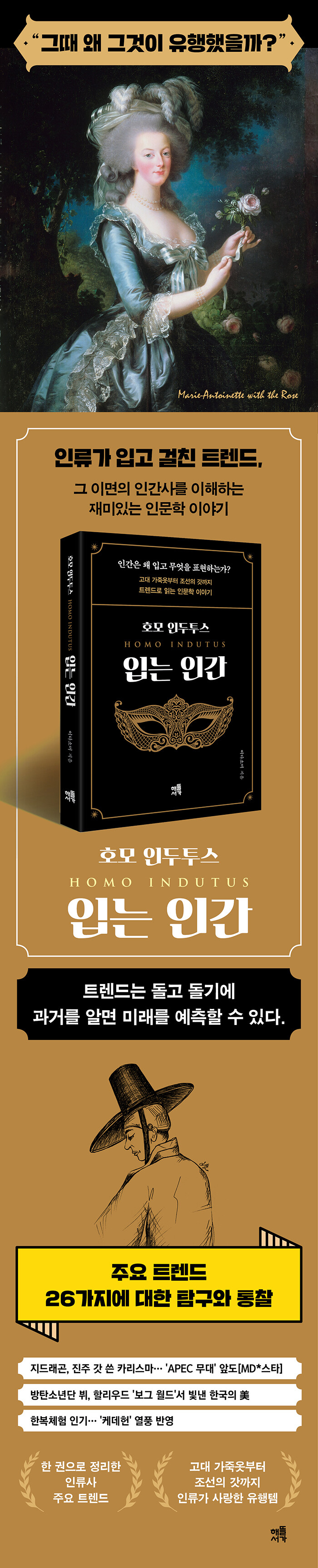 ¿ÊÀÌ Àΰ£ÀÇ ÇÊ¿ä¿Í ¿å¸Á, ½Ã´ëÀÇ »ó¡À̶ó´Â °üÁ¡À» Á߽ɿ¡ µÎ°í ¼º°æÀÇ ¼±¾Ç°ú À̾߱âºÎÅÍ À¯¸ñ¹ÎÁ·ÀÇ ¹ÙÁö, Ç 8¼¼ÀÇ ÄÚµåÇǽº, ·çÀÌ 14¼¼ÀÇ ½ºÅ¸Å·, ÇÁ¸®´Ù Ä®·Î¿Í ¾Óµå·¹ ±è±îÁö À̾îÁö´Â 26°¡Áö Æ®·»µå¸¦ Àι®ÇÐÀûÀ¸·Î Ç®¾î³½´Ù. ¼¹ÎÀÇ »ýÁ¸ µµ±¸ÀÌÀÚ ±Ç·ÂÀÚÀÇ ÁöÀ§ Ç¥½ÄÀ̾ú´ø ¿ÊÀÌ ¾î¶»°Ô ¹®ÈÀû »ó¡ÀÌ µÇ¾ú´ÂÁö, ¡®È£¸ð ÀεÎÅõ½º¡¯¶ó´Â °³³äÀ» ÅëÇØ Àΰ£°ú ¿ÊÀÇ °ü°è¸¦ »õ·Ó°Ô Á¶¸íÇÑ´Ù.