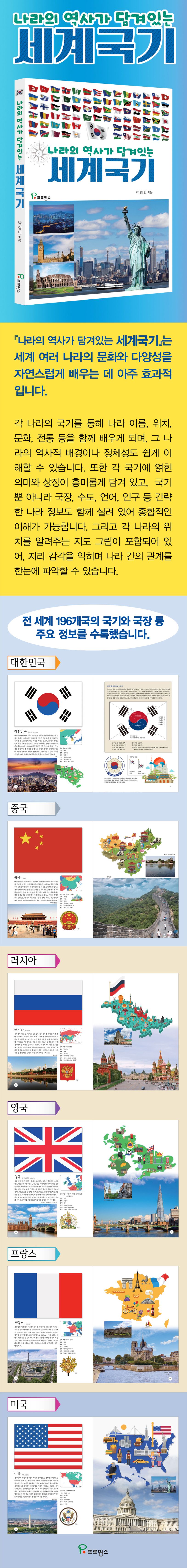 °¢ ³ª¶óÀÇ ±¹±â¸¦ ÅëÇØ ³ª¶ó À̸§, À§Ä¡, ¹®È, ÀüÅë µîÀ» ÇÔ²² ¹è¿ì°Ô µÇ¸ç, ±× ³ª¶óÀÇ ¿ª»çÀû ¹è°æÀ̳ª Á¤Ã¼¼ºµµ ½±°Ô ÀÌÇØÇÒ ¼ö ÀÖ½À´Ï´Ù. ¶ÇÇÑ °¢ ±¹±â¿¡ ¾ôÈù ÀÇ¹Ì¿Í »ó¡ÀÌ Èï¹Ì·Ó°Ô ´ã°Ü ÀÖ°í, ±¹±â»Ó ¾Æ´Ï¶ó ±¹Àå, ¼öµµ, ¾ð¾î, Àα¸ µî °£·«ÇÑ ³ª¶ó Á¤º¸°¡ ÇÔ²² ½Ç·Á ÀÖ¾î Á¾ÇÕÀûÀÎ ÀÌÇØ°¡ °¡´ÉÇÕ´Ï´Ù. ±×¸®°í °¢ ³ª¶óÀÇ À§Ä¡¸¦ ¾Ë·ÁÁÖ´Â Áöµµ ±×¸²ÀÌ Æ÷ÇԵǾî ÀÖ¾î, Áö¸® °¨°¢À» ÀÍÈ÷¸ç ³ª¶ó °£ÀÇ °ü°è¸¦ ÇÑ´«¿¡ ÆÄ¾ÇÇÒ ¼ö ÀÖ½À´Ï´Ù.