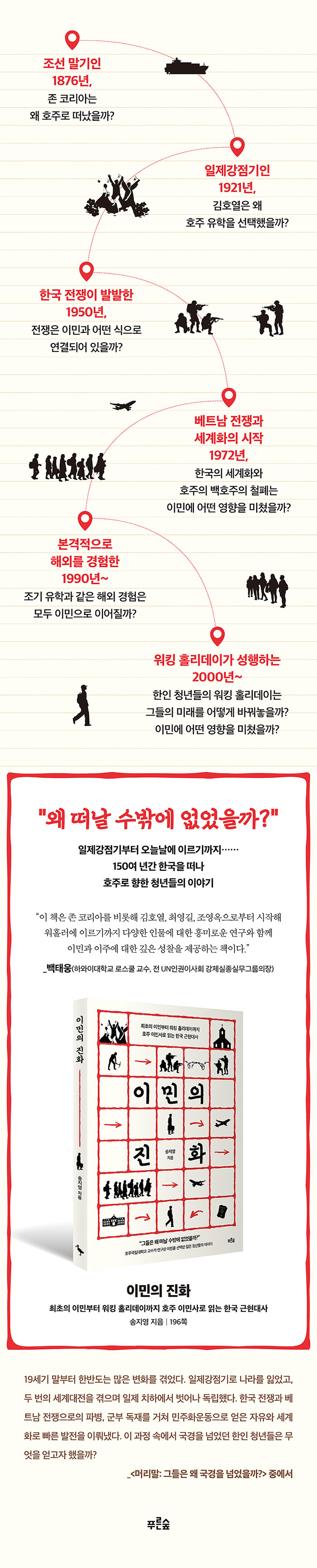 À̹ÎÀÇ ÁøÈ¡·´Â ÃÖÃÊÀÇ ÇÑÀÎ À̹ÎÀÚ Á¸ ÄÚ¸®¾Æ¸¦ ã¾Æ³½ ¿¬±¸ºÎÅÍ, ÀÏÁ¦ °Á¡±â, Çѱ¹ ÀüÀï°ú º£Æ®³² ÀüÀïÀ̶ó´Â ³¸® ¼Ó¿¡¼ ÀÚÀÇ È¤Àº ŸÀÇ·Î ³ª¶ó¸¦ ¶°³ À̵éÀÇ À̾߱⸦ µé¾îº»´Ù. ±×¸®°í ¼¼°è¿©Çà ÀÚÀ¯È¿Í È£ÁÖ¿Í Ã¼°áÇÑ ¿öÅ· Ȧ¸®µ¥ÀÌ µîÀÇ ½Ã´ëÀû º¯È°¡ À̹ο¡ ¾î¶² ¿µÇâÀ» Áá´ÂÁö »ìÆìº»´Ù.