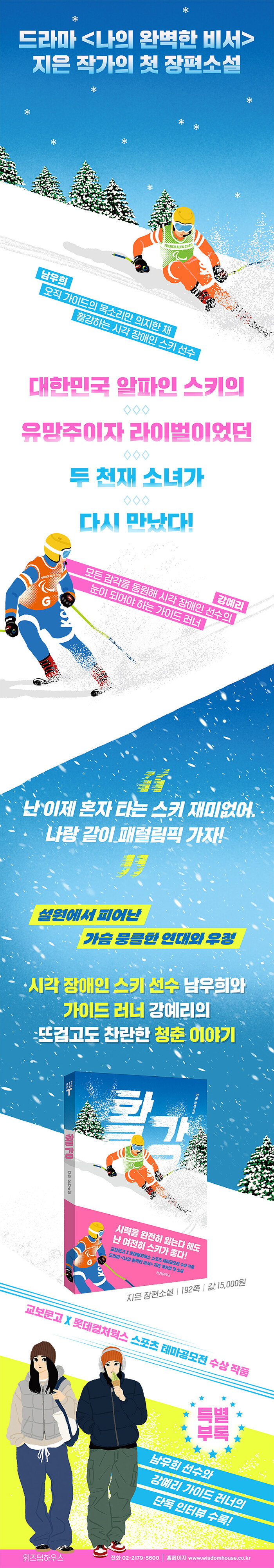 µå¶ó¸¶ <³ªÀÇ ¿Ïº®ÇÑ ºñ¼>¸¦ ÅëÇØ ·Î¸Ç½º¸¦ ³Ñ¾î µ¹º½ÀÇ °¡Ä¡¸¦ ÀçÁ¶¸íÇÏ¸ç ¶ß°Å¿î Âù»ç¸¦ ¹ÞÀº ÁöÀº ÀÛ°¡°¡ ù ÀåÆí¼Ò¼³ ¡ºÈ°°¡»À» ¼±º¸ÀδÙ. ´ëÇѹα¹ ¾ËÆÄÀÎ ½ºÅ°ÀÇ À¯¸ÁÁÖÀÌÀÚ ¶óÀ̹úÀ̾ú´ø µÎ õÀç ¼Ò³à ³²¿ìÈñ¿Í °¿¹¸®°¡ ½Ã°¢ Àå¾ÖÀÎ ¼±¼ö¿Í °¡ÀÌµå ·¯³Ê·Î ´Ù½Ã ¸¸³ª °Þ°Ô µÇ´Â °¥µî°ú ¼ºÀåÀ» ±×¸° ÀÛǰ. ÀڽŸ¸ÀÇ ¼Óµµ·Î °¡Àå ´«ºÎ½Å Ȱ°À» ÆîÃij¾ ÀÌ ¶¥ÀÇ ¸ðµç ûÃá¿¡°Ô ¹ÙÄ¡´Â µû¶æÇÑ Çå»ç °°Àº À̾߱âÀÌ´Ù. ÁßÇб³ 3Çг⠵¿°è üÀü, ¸ðµç ´ëȸ ¼®±ÇÀ» ¾ÕµÎ°í ¸¶Áö¸· °æ±â¿¡¼ ºÒÀÇÀÇ »ç°í·Î ½Ã·ÂÀ» ÀÒÀº ³²¿ìÈñ, ¾î·Á¿î °¡Á¤ ÇüÆí°ú Áöµ¶ÇÑ ½½·³ÇÁ·Î ¼±¼ö·Î¼ÀÇ ¸¶Áö¸· ÀÚ¸®±îÁö ÀÒÀº °¿¹¸®. °¡Àå Âù¶õÇÏ°Ô ºû³ª´ø ¼ø°£ ±íÀº Ãß¶ôÀ» °æÇèÇÑ µÎ »ç¶÷Àº ¿ÀÁ÷ ½ºÅ°¸¦ À§ÇØ ¼·ÎÀÇ ¼ÕÀ» ¸ÂÀâ´Â´Ù. µå¶ó¸¶ <³ªÀÇ ¿Ïº®ÇÑ ºñ¼>·Î Àι° °£ÀÇ ¼¶¼¼ÇÑ °ü°è ¹¦»ç·Î È£ÆòÀ» ¹ÞÀº ÀÛ°¡´Â À̹ø ÀÛǰ¿¡¼µµ ´Ü¼øÈ÷ Àå¾Ö¿Í ³°üÀ» ±Øº¹ÇÏ´Â ½ºÆ÷Ã÷ µå¶ó¸¶¸¦ ³Ñ¾î, ½ÇÆÐ¿Í ÁÂÀýÀ» °ÞÀº µÎ »ç¶÷ÀÌ ¼·ÎÀÇ ¼¼°è¸¦ ÀÌÇØÇÏ°í ¿¬´ëÇϸç ÇÔ²² ¼ºÀåÇÏ´Â °úÁ¤À» °¨µ¿ÀûÀ¸·Î º¸¿© ÁØ´Ù. Ã¥ÀÇ ¸»¹Ì¿¡´Â ÀÛ°¡°¡ µ¶ÀÚ¿¡°Ô ÀüÇϴ Ưº°ÇÑ ¼±¹° °°Àº, ½º¹« »ìÀÌ µÈ ³²¿ìÈñ¿Í °¿¹¸®ÀÇ ´Üµ¶ ÀÎÅͺ䰡 ¼ö·ÏµÇ¾î ÀÖ´Ù.