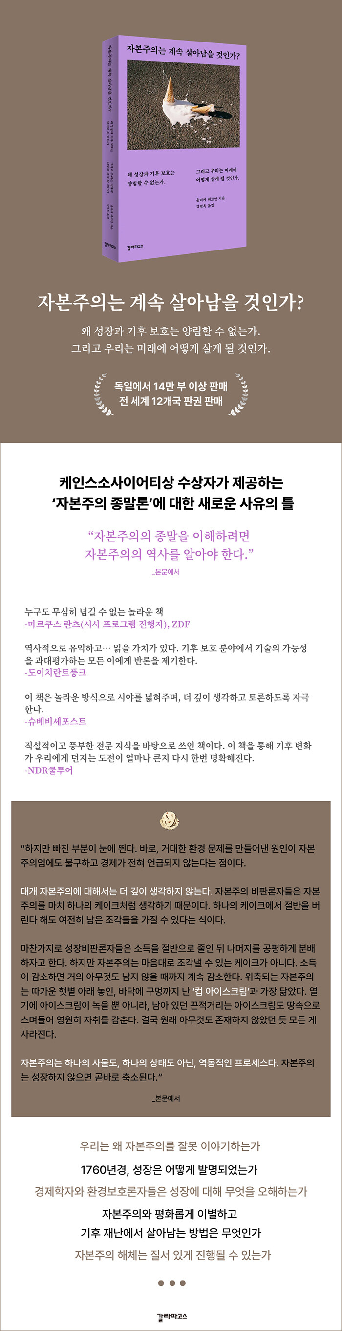 À¯ÇÑÇÑ Áö±¸¿¡¼ ¹«ÇÑÇÑ ¼ºÀåÀº ºÒ°¡´ÉÇÏ´Ù. ±×·¸´Ù¸é ¼ºÀå ¾øÀÌ´Â °áÄÚ Áö¼ÓµÉ ¼ö ¾ø´Â ÀÚº»ÁÖÀÇ´Â ³¡³¯ ¼ö¹Û¿¡ ¾ø´Ù. »ç½Ç, ¡®ÀÚº»ÁÖÀÇ Á¾¸»·Ð¡¯Àº µ¶Ã¢ÀûÀÎ ¿¹¾ðÀÌ ¾Æ´Ï´Ù. ¿¹·ÎºÎÅÍ ¹«¼öÈ÷ ¸¹Àº ¡®ÀÚº»ÁÖÀÇ Á¾¸»·Ð¡¯ÀÌ Á¸ÀçÇß°í, ÀηùÀÇ Ã¢ÀǼº°ú ±â¼úÀÇ Áøº¸¸¦ ¹Ï´Â ¿¬±¸ÀÚµéÀº ÀÌÁ¦±îÁö ¸ðµç ¡®ÀÚº»ÁÖÀÇ Á¾¸»·Ð¡¯ÀÌ °ÅÁþ ¿¹¾ðÀ¸·Î ³¡³µ´Ù¸ç ºñ¿ô°ï ÇÑ´Ù. ÇÏÁö¸¸ ÀúÀÚ´Â À̹ø¿¡¾ß¸»·Î ÀÚº»ÁÖÀÇ´Â Á¾¸»À» ¸ÂÀÌÇÒ °ÍÀ̶ó°í À̾߱âÇÑ´Ù. ±âÈÄ À糿¡¼ ¿ì¸®¸¦ ±¸ÇÒ ¹æ¹ýÀº ±×°Í¹Û¿¡ ¾ø±â ¶§¹®ÀÌ´Ù. ±×¸®°í ¾ÕÀ¸·Î µµ·¡ÇÒ °æÁ¦ Áú¼´Â, Àηù¸¦ ±¸ÇÒ ¡®»ýÁ¸°æÁ¦¡¯ÀÌ´Ù. ±âÈÄ´Â ±â´Ù·ÁÁÖÁö ¾Ê´Â´Ù. ÀÚº»ÁÖÀÇÀÇ Á¾¸»Àº ¿¹¾ðÀÌ ¾Æ´Ï¶ó, Áö±¸¿Í ÀηùÀÇ »ýÁ¸À» À§ÇØ ¹Ýµå½Ã µµ´ÞÇØ¾ß ÇÏ´Â ¸ñÀûÁö´Ù. ÀÌ Ã¥Àº ±× ¸ñÀûÁö¸¦ ÇâÇØ ³ª¾Æ°¥ °¡Àå ¼³µæ·Â ÀÖ´Â ÁöÀû ¾È³»¼´Ù.