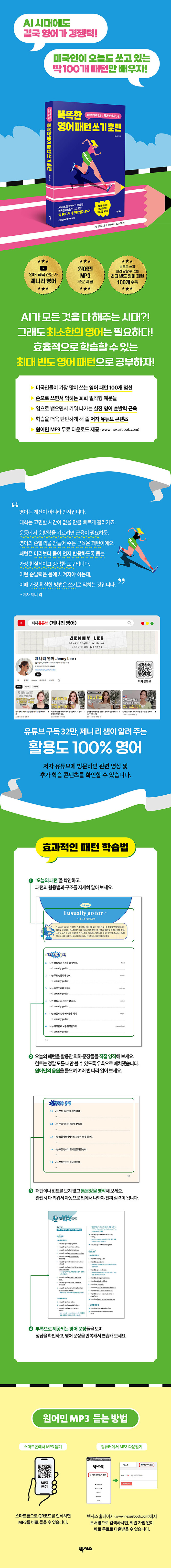 AI°¡ ¸ðµç °ÍÀ» ´Ù ÇØ°áÇØ ÁÖ´Â ½Ã´ë, AI°¡ ¾Æ¹«¸® Åë¹ø¿ªÀ» Àß ÇØ Áشٰí ÇØµµ ÃÖ¼ÒÇÑÀÇ ¿µ¾î ½Ç·ÂÀº ÇÊ¿äÇÏ´Ù. °¡Àå È¿À²ÀûÀÎ ¿µ¾î ÇнÀ¹ýÀÎ ¡®¿µ¾î ÆÐÅÏ¡¯À» ¼ÕÀ¸·Î ¾²¸é¼ ÀÍÈ÷°í, ÀÔÀ¸·Î ¹ñÀ¸¸é¼ ÀÚÀ¯·Ó°Ô ¸»ÇØ º¸ÀÚ.