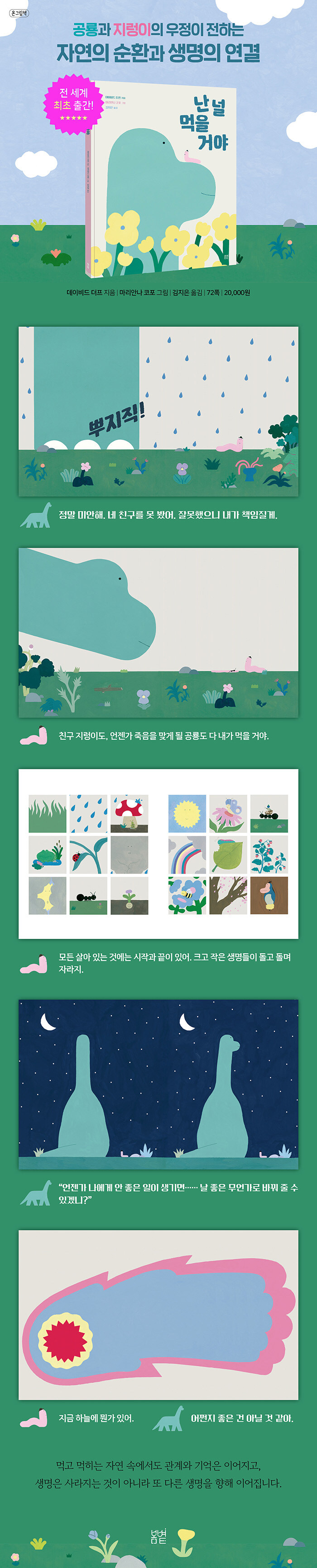 ¡¶³ ³Î ¸ÔÀ» °Å¾ß¡·´Â ¸Ô°í ¸ÔÈ÷´Â ¼¼°è¸¦ ´Ü¼øÇÑ »ýÁ¸ °æÀïÀ¸·Î ¹¦»çÇÏÁö ¾Ê´Â´Ù. ´ë½Å, ÀÚ¿¬ ¼Ó¿¡¼ »ý¸íÀÌ À̾îÁö´Â ¹æ½ÄÀÌ ¾ó¸¶³ª ¼¶¼¼ÇÏ°í ¼·Î ¿¬°áµÇ¾î ÀÖ´ÂÁö ÀºÀ¯ÀûÀ¸·Î º¸¿© ÁØ´Ù. Áö··ÀÌ, ²É, »õ, °ø·æ±îÁö µîÀåÇÏ´Â Á¸ÀçµéÀº ¼·ÎÀÇ ¸ÔÀ̰¡ µÇ°Å³ª ¼·ÎÀÇ »îÀ» ÁöÅÊÇÏ´Â Á¸Àç°¡ µÈ´Ù. µ¶ÀÚ´Â ¡®¸Ô´Â´Ù¡¯´Â ÇàÀ§°¡ ÆÄ±«°¡ ¾Æ´Ñ ¼øÈ¯ÀÇ ÇÑ °úÁ¤ÀÓÀ» ÀÚ¿¬½º·´°Ô ÀÌÇØÇÏ°Ô µÈ´Ù. ÀÌ °úÁ¤¿¡¼ ¾î¸°ÀÌ´Â »ýŰèÀÇ ±¸Á¶¸¦ °¨°¢ÀûÀ¸·Î ¹Þ¾ÆµéÀ̰í, »ý¸í°ú ȯ°æ¿¡ ´ëÇØ ½º½º·Î Áú¹®ÇÒ ±âȸ¸¦ ¾ò°Ô µÈ´Ù. ¶ÇÇÑ À̾߱⠼ÓÀÇ Á×À½Àº µÎ·Æ°Å³ª ½½ÇÁ°Ô¸¸ ´Ù·ïÁöÁö ¾Ê´Â´Ù. ±×°ÍÀº »õ·Î¿î »ý¸íÀÇ Ãâ¹ßÁ¡À̸ç, ¿ìÁ¤°ú ±â¾ï ¼Ó¿¡¼ °è¼Ó »ì¾Æ ÀÖ´Â Á¸Àç·Î ´Ù°¡¿Â´Ù.