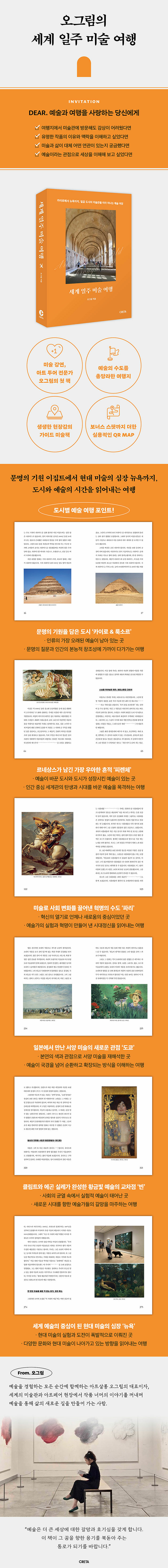 ¶ÇÇÑ ÀúÀÚ°¡ ¼¼°è °÷°÷ÀÇ ¹Ì¼ú°ü¿¡¼ ´À³¤ °¨Á¤°ú »çÀ¯ÀÇ Á¶°¢Àº ÀÌ ¿¹¼ú ¿©ÇàÀÌ ¹Ì¼ú»ç¸¦ ÀÌÇØÇÏ´Â °Í¿¡¸¸ ¸Ó¹°Áö ¾Ê°Ô ÇÑ´Ù. °¢ µµ½Ã¿¡¼ ¸¸³ ¹Ì¼ú°üÀº ÀúÀÚ¿¡°Ô ¿ë±â¿Í À§·Î, »õ·Î¿î ½Ã¼±°ú Áú¹®À» °Ç³Þ°í, ±× °¨Á¤°ú ±ú´ÞÀ½ÀÇ ±ËÀûÀ» ÀÌ Ã¥¿¡ Ãæ½ÇÈ÷ ´ã¾Æ³Â´Ù. µ¶ÀÚµéÀº À̸¦ ÅëÇØ ¹Ì¼ú°üÀ» ¿©ÇàÇÏ´Â ÀÏÀÌ °á±¹Àº ÀÚ½ÅÀ» µ¹¾Æº¸´Â ÇàÀ§¿Í ¸Â´ê¾Æ ÀÖÀ½À» ÀÚ¿¬½º·¹ ±ú´Ý°Ô µÉ °ÍÀÌ´Ù.