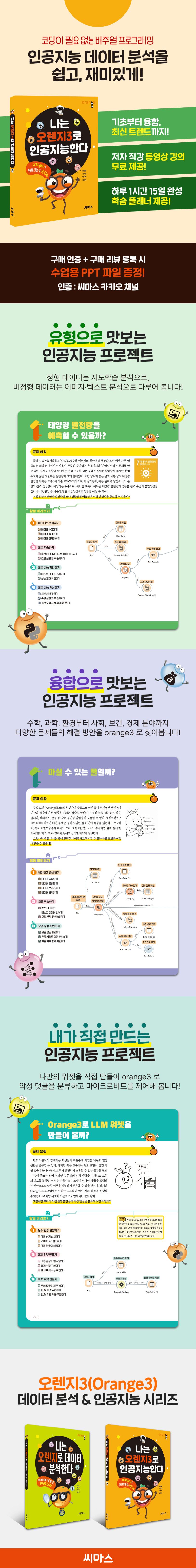 ´Ü°èº°·Î ±¸¼ºµÈ ´Ù¾çÇÑ ¹®Á¦ ÇØ°á ÇÁ·ÎÁ§Æ®·Î Orange3 Ȱ¿ë¹ý°ú ÀΰøÁö´É °³³ä ¹× ¿ø¸®¸¦ ÀÚ¿¬½º·´°Ô ÀÍÈú ¼ö ÀÖ´Â ÀÌ Ã¥Àº ´ÙÀ½°ú °°Àº Ưº°ÇÑ °Á¡À» °¡Áö°í ÀÖ½À´Ï´Ù.