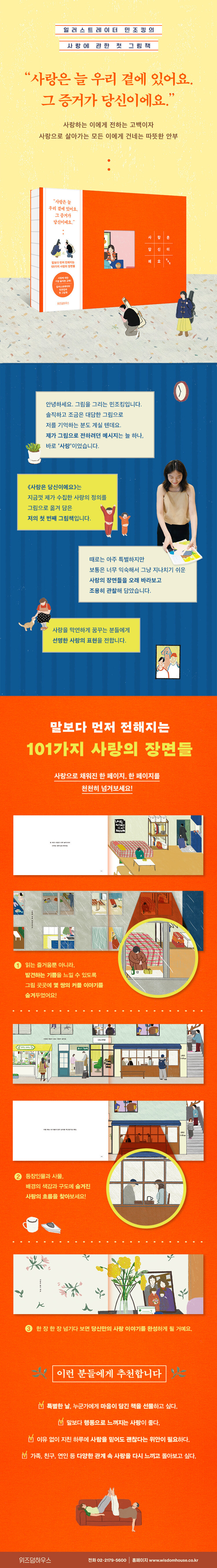 ¡¶»ç¶ûÀº ´ç½ÅÀÌ¿¡¿ä¡·´Â ÀÏ·¯½ºÆ®·¹ÀÌÅÍ ¹ÎÁ¶Å·ÀÌ ¿À·£ ½Ã°£ °üÂûÇÏ°í ¼öÁýÇØ¿Â »ç¶ûÀÇ ¼ø°£µéÀ» 101°¡Áö Àå¸éÀ¸·Î ´ã¾Æ³½ ù ±×¸²Ã¥ÀÌ´Ù. ÀÌ Ã¥Àº ´ë´ÜÇϰųª °ÅâÇÑ »ç¶ûÀÌ ¾Æ´Ï¶ó, ¿ì¸®°¡ ¸ÅÀÏ ¸¶ÁÖÇÏÁö¸¸ Á¾Á¾ Áö³ªÃĹö¸®´Â »ç¶ûÀÇ º»Áú°ú ¼Ó¼ºÀ» ¼¶¼¼ÇÏ°Ô Æ÷ÂøÇÑ´Ù. »ç¶ûÀ» ¼ö½ÄÇÏ´Â È·ÁÇÑ ¸»º¸´Ù ¸¶À½À¸·Î ¸ÕÀú ÀüÇØÁö´Â »ç¶ûÀÇ ºñ¾ð¾îÀûÀΠǥÇöÀ» ¼¼¹ÐÇÏ°Ô ±×·Á³½´Ù.