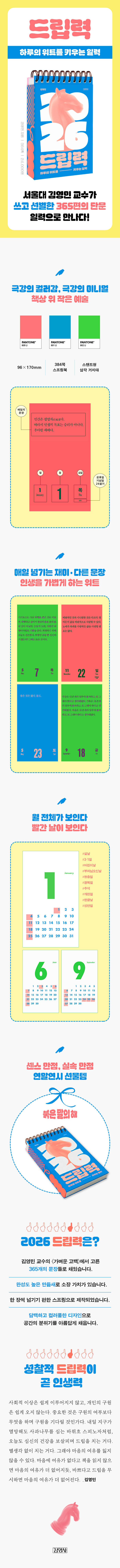 ¼¿ï´ë ±è¿µ¹Î ±³¼ö°¡ óÀ½ ¼±º¸ÀÌ´Â ÀÏ·Â ¡¶µå¸³·Â¡· Ãâ°£! ¡¶°¡º¿î °í¹é¡·¿¡¼ °í¸¥ 365°³ÀÇ ¹®ÀåÀ» ¼±º°ÇØ ¿«¾ú´Ù. ±è¿µ¹Î ±³¼ö°¡ 2007³âºÎÅÍ 2024³â±îÁö 17³â°£ ½á ³»·Á°£ ¹®ÀåÀ» Çѵ¥ ¸ð¾Ò´Ù. ¡°»îÀº Á¾Á¾ ºÎÁ¶¸®¿Í °æÀ̸¦ °£Á÷ÇÑ ¸ðÈ£ÇÑ Çö»óÀ̹ǷÎ, ¶§·Î´Â ±¸¸§À» ¼úÀÜ¿¡ ´ãµí »îÀ» ´ã¾Æ¾ß¡± Çϸç, ¡°µå¸³Àº ¹Ù·Î ¾ð¾î·Î µÈ ±× ¼úÀÜ¡±ÀÌ´Ù. ÀÌ·± µå¸³À» ÅëÇØ Ç¥ÇöµÇ´Â »ýÀÇ Áø½ÇÀ» À½¹ÌÇϸç, ´Ù»ç´Ù³ÇÑ ÀÏ¿¡ ¸¶À½ÀÇ ¿©À¯¸¦ ÀÒÁö ¾Ê°í »ì¾Æ°¡ÀÚ°í µ¶ÀÚ¸¦ ÀÀ¿øÇÑ´Ù.