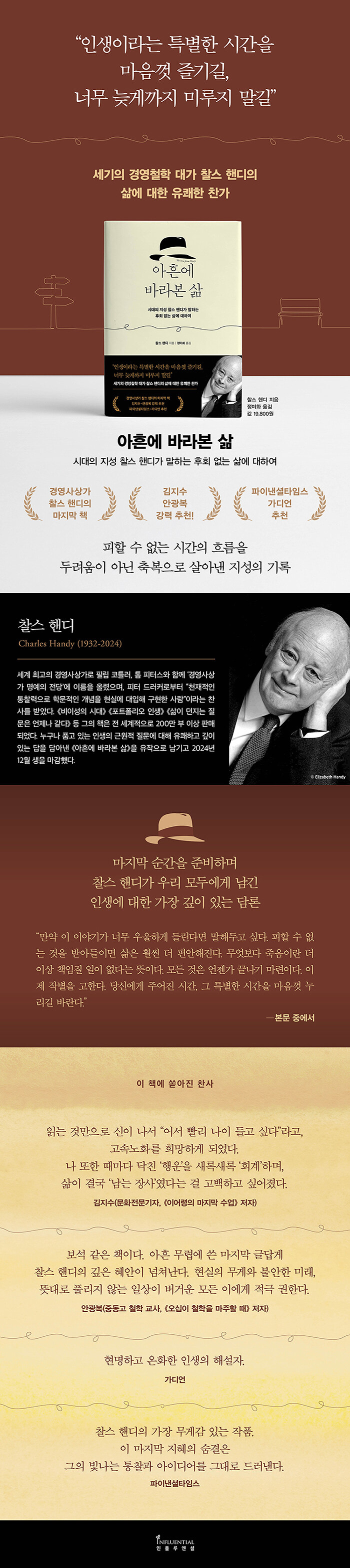 ¡®¼¼°è ÃÖ°íÀÇ °æ¿µ»ç»ó°¡ 50ÀÎ(Thinker 50)¡¯ Áß ÇÑ »ç¶÷À¸·Î ¡®°æ¿µ »ç»ó°¡ ¸í¿¹ÀÇ Àü´ç¡¯¿¡ À̸§À» ¿Ã¸° Âû½º ÇÚµð. ¡¶¾ÆÈç¿¡ ¹Ù¶óº» »î¡·Àº 2024³â 12¿ù ¼¼»óÀ» ¶°³ ±×ÀÇ À¯ÀÛÀ¸·Î, »îÀÇ ³¡¿¡ ¿Í¼¾ß ºñ·Î¼Ò ±ú´Ý°Ô µÈ ÀλýÀÇ º»Áú°ú Àǹ̸¦ ´ã°í ÀÖ´Ù.