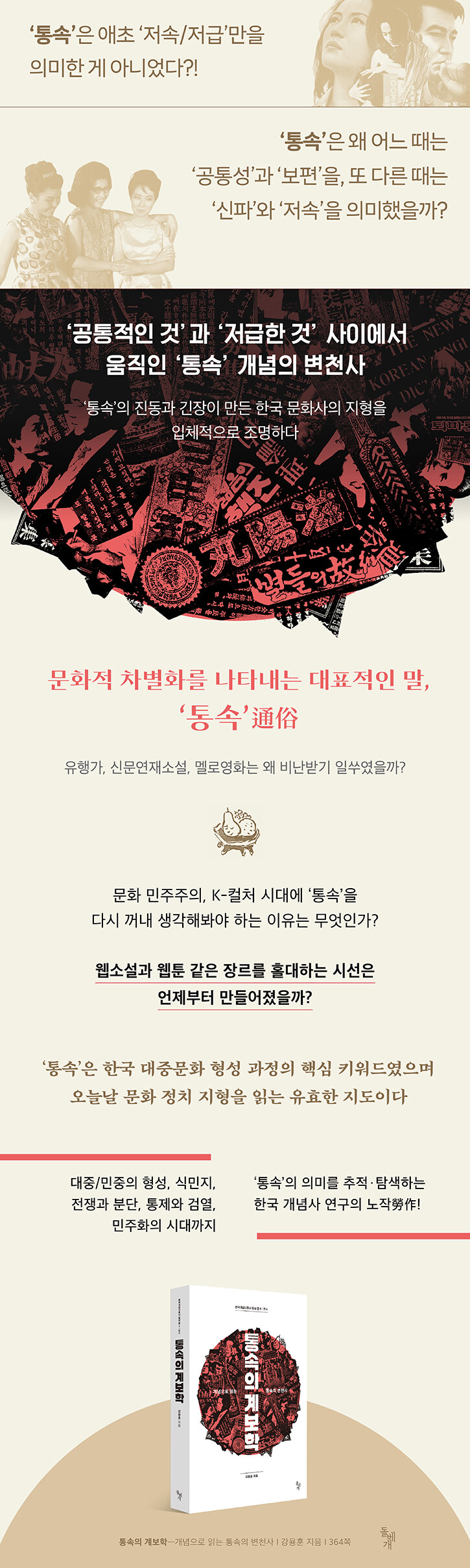 ¡®Åë¼Ó¡¯Àº ¡®°øÅëÀûÀÎ °Í¡¯°ú ¡®Àú¼ÓÇÑ °Í¡¯À̶ó´Â ÀÇ¹Ì »çÀÌ¿¡¼ ¿Ô´Ù°¬´ÙÇϸç Çѱ¹ ±Ù´ë¼ºÀÇ ÇÑ ¸é¸ð¸¦ Çü¼ºÇß´Ù. ¡ºÅë¼ÓÀÇ °èº¸ÇС»Àº ±× ´ÙÃþÀû ¸ð½ÀÀ» 100¿© ³âÀÌ ³Ñ´Â ±â°£ÀÇ ½Å¹®¤ýÀâÁö¤ý»çÀü¤ýºñÆò ¾ÆÄ«À̺긦 ÅëÇØ º¹¿øÇϰí, ¿À´Ã³¯ ¹®È ¹ÎÁÖÈ¿Í K-ÄÃó ½Ã´ë¿¡ ¡®Åë¼Ó¡¯À» ´Ù½Ã±Ý »çÀ¯ÇÒ ¼ö ÀÖ´Â Àǹ̷ÐÀû ±âÃʸ¦ Á¦°øÇÑ´Ù. ÀúÀÚ´Â 2024³â 12¤ý3 ³»¶õ źÇÙ Áýȸ¿¡ Âü¼®ÇÑ »ç¶÷µéÀÌ ¾ÆÀ̵¹ ÀÀ¿øºÀÀ» µé°í ´ëÁßÀ½¾ÇÀ» ÇÔ²² ºÎ¸£´Â ¸ð½ÀÀ» º¸°í, ÀÚ½ÅÀÇ ¡®Åë¼Ó¡¯ ¿¬±¸°¡ ÇöÀçÀû ÀÇÀǸ¦ Áö´Ò ¼ö ÀÖ°Ú´Ù´Â »ý°¢À» Çϸç, 7Àå(¹®È ¹ÎÁÖÈ ½Ã´ëÀÇ ¡®Åë¼Ó¡¯)À» ´Ù½Ã ¾²°Ô µÇ¾ú´Ù°í ¸»ÇÑ´Ù. Áï ¡®Åë¼Ó¡¯ °³³äÀÇ ¿ª»ç¸¦ Àд ÀÏÀÌ ÇöÀçÀÇ Çѱ¹ »çȸ¿Í ±× ¹®ÈÀû Á¤Ã¼¼ºÀ» ÀÌÇØÇÏ´Â µ¥ ÀÖ¾î¼ ÃæºÐÈ÷ ÀÇÀǰ¡ ÀÖ´Ù´Â °ÍÀÌ´Ù.