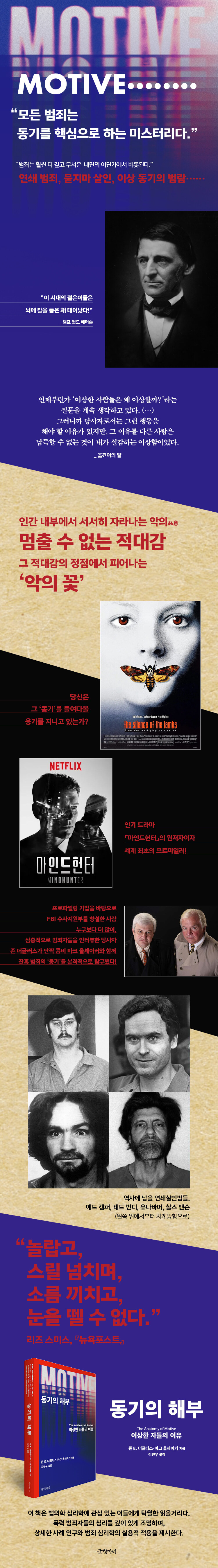 ¼¼°èÀûÀÎ º£½ºÆ®¼¿·¯ ¡º¸¶ÀεåÇåÅÍ¡»ÀÇ ÀúÀÚµéÀÌ ´Ù½Ã ¹¶ÃÆ´Ù. À̹ø¿¡´Â ¡®¹üÁËÀÇ µ¿±â¡¯¸¦ ÆÄ°íµç´Ù. ¸ðµç ¹üÁË´Â µ¿±â¸¦ ÇÙ½ÉÀ¸·Î ÇÏ´Â ¹Ì½ºÅ͸®´Ù. µ¿±â¸¦ ÀÌÇØÇÏ¸é ¼ö¼ö²²³¢¸¦ Ç® ¼ö ÀÖ´Ù. ¡ºµ¿±âÀÇ ÇØºÎ¡»´Â ¹üÁËÀÚÀÇ Á¤½ÅÀÌ ¾î¶»°Ô Çü¼ºµÇ°í ÁøÈÇÏ´ÂÁö ±ØÀûÀ̰í ÅëÂû·Â ÀÖ°Ô Á¶¸íÇÑ´Ù. FBI ¼ö»çÁö¿øºÎ Àü ¼öÀåÀÎ ´õ±Û·¯½º´Â ¿¬¼â¹üÁËÀÚ¿¡ ´ëÇÑ Çö´ëÀû Çൿ ÇÁ·ÎÆÄÀϸµÀÇ ¼±±¸ÀÚ´Ù. Àú¸íÇÑ ¼Ò¼³°¡ÀÌÀÚ Àú³Î¸®½ºÆ®, ¿µÈ Á¦ÀÛÀÚÀÎ ¸¶Å© ¿Ã¼ÎÀÌÄ¿¿Í ´Ù½Ã Çѹø Çù¾÷ÇÑ ´õ±Û·¯½º´Â ÀÚ½ÅÀÇ Àü¼³ÀûÀÎ °æ·Â¿¡¼ ³ª¿Â »ç·ÊµéÀ» ¿¹½Ã·Î »ï¾Æ ¹æÈ¹ü, ³³Ä¡¹ü, ÆøÅº¹ü, ¿¬¼â»ìÀιü, ´ë·® »ìÀιüµéÀÇ °¡Àå ¾îµÎ¿î Á¤½Å¼¼°è´Â ¹°·Ð, Æò¹üÇØ º¸ÀÌ´ø »ç¶÷µéÀÌ °©Àڱ⠰¡Á·À» »ìÇØÇϰųª Á÷Àå¿¡¼ ³µ¿À» ºÎ¸®´Â °æ¿ì±îÁö ÆÄÇìÄ£´Ù.