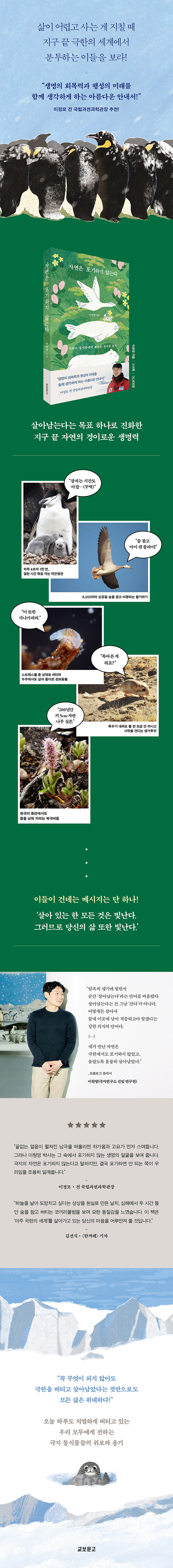 ¿À´Ã³¯ Àΰ£ »çȸ´Â Á¤¸» ±ØÇÑÀÌ´Ù. ±×·¡¼ ¿ì¸®´Â Á¾Á¾ ¡®»ç´Â °Ô ³Ê¹« Èûµé´Ù¡¯´Â »ý°¢À» Çϰï ÇÑ´Ù. ÀÌ·¸°Ô »ç´Â °Ô ³Ê¹« Èûµç °Ô °ú¿¬ Àΰ£»ÓÀϱî? ¿µÇÏ 40µµÀÇ ¾ð ¶¥, Àá¼öÇÔÀÇ ÃÖ´ë ÀáÇ× ±íÀ̺¸´Ù ´õ ±íÀº ¹Ù´Ù, »ê¼Ò°¡ Èñ¹ÚÇÑ ³ôÀº ÇÏ´Ã, ÇÑ Ä¡ ¾Õµµ º¸ÀÌÁö ¾Ê´Â įįÇÑ µ¿±¼, ¹° ÇÑ ¹æ¿ï ±¸Çϱ⠾î·Á¿î °ÇÁ¶ÇÑ »ç¸·, ¸» ±×´ë·Î ±ØÇÑÀÇ È¯°æ¿¡µµ »ý¸íÀº Á¸ÀçÇÑ´Ù. ³²±Ø°ú ºÏ±Ø µî ±ØÁö¸¦ ¿À°¡¸ç µ¿¹° ÇൿÀ» ¿¬±¸Çϰí, Æë±ÏÀ» ºñ·ÔÇÑ ¾ß»ýÀÇ µ¿¹°µé¿¡ °üÇÑ Ã¥À» Ãâ°£ÇÑ ¹Ù ÀÖ´Â ±ØÁö¿¬±¸¼Ò ÀÌ¿ø¿µ ¼±ÀÓ ¿¬±¸¿øÀÌ À̹ø¿¡´Â ÀÌ·± ±ØÇÑÀÇ È¯°æÀ» ÁøÈ·Î ±Øº¹ÇÏ°í ²à²àÇÏ°Ô »ì¾Æ°¡´Â ¿¿©¼¸ Á¾ÀÇ µ¿½Ä¹°µéÀ» ¼Ò°³ÇÑ´Ù.