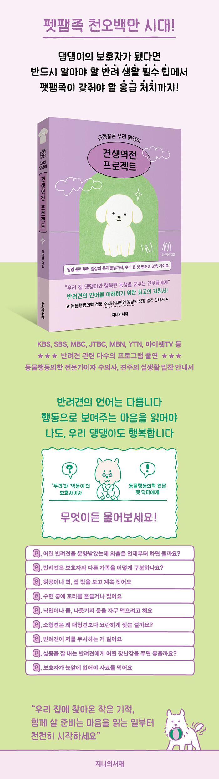 Ã¥¿¡´Â º¸È£ÀÚ¿¡°Ô ¸Â´Â ¹Ý·Á°ß ǰÁ¾À» ¼±ÅÃÇÏ´Â ¹ýºÎÅÍ, ÀÔ¾ç ½Ã È®ÀÎÇØ¾ß ÇÒ »çÇ×, Çʼö »ýȰ¿ëǰ°ú ÀÏ»ó °ü¸®±îÁö ²Ä²ÄÇÏ°Ô ¾È³»ÇÑ´Ù. ¹Ý·Á°ßÀ» °Ç°ÇÏ°Ô Å°¿ì±â À§ÇØ °¡Àå ¿ì¼±½ÃÇØ¾ß ÇÒ °ÍÀº À§»ýÀÌ´Ù. ÁÖ±âÀûÀ¸·Î ¾çÄ¡¿Í ¸ñ¿å, ¹ßÅé ±ð±â¸¦ ÇÒ ¶§ ÁÖÀÇÇØ¾ß ÇÒ »çÇ×À» ½ÇÁ¦ °ßÁÖ ÀÔÀå¿¡¼ ²Ä²ÄÇÏ°íµµ Ä£ÀýÇÏ°Ô ´Ù·ð´Ù. ¶ÇÇÑ »çÈ¸È ÈÆ·ÃÀ» À§ÇØ ²À ÇÊ¿äÇÑ »êÃ¥, ¿øÈ°ÇÑ ÈÆ·ÃÀ» À§ÇÑ °£½Ä ÁÖ±â µî ±âº» »ýȰ ½À°üÀ» ¼¼¼¼È÷ ¼³¸íÇØ ´©±¸³ª ¹Ý·Á°ß°ú ¾ÈÁ¤ÀûÀ̰í Áñ°Å¿î ÀÏ»óÀ» ¸¸µé ¼ö ÀÖ´Ù. ¹Ý·Á°ß À°¾Æ Áö½ÄÀº ´Ü¼øÈ÷ ±×¶§±×¶§ ÇÊ¿äÇÑ »ó½ÄÀÇ Àü´ÞÀÌ ¾Æ´Ï¶ó, ¸ô¶ó¼ ¹ß»ýÇÒ ¼ö ÀÖ´Â ¹®Á¦ÇൿÀ» ¿¹¹æÇÏ´Â °ÍÀÌ ÇÙ½ÉÀÌ´Ù.