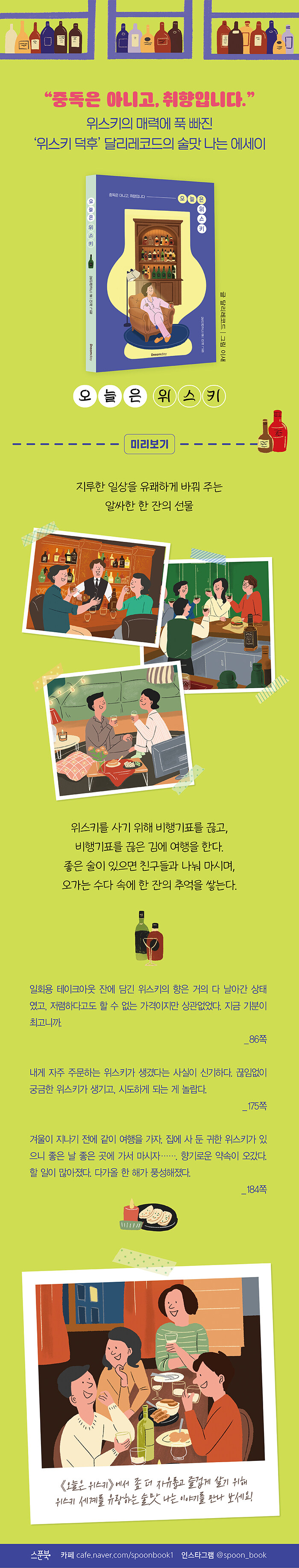 ²ôÀû°Å¸®±â¸¦ ÁÁ¾ÆÇÑ´Ù. ÀϺ» À¯ÇÐ ½ÃÀý¿¡ ¸¸³ª ÇÔ²² ³ªÀÌ µé¾î °¡´Â ±×¿Í À§½ºÅ°¸¦ Áñ°Ü ¸¶½Ã¸ç ¶Ç ´Ù¸¥ Ãß¾ïÀ» ½×°í ÀÖ´Ù. À§½ºÅ°·Î ¹ÝÂë ä¿öÁø ¼úÀÜÀº »îÀÇ ³«ÀÌÀÚ ÀÛÀº ¿©ÇàÀÌ´Ù. ÀÏ»óÀÇ ÀÛÀº ±â»ÝÀ» ÇÔ²² ³ª´©°íÀÚ ÆíÁý µðÀÚÀ̳ʷΠÀÏÇÑ °æÇèÀ» »ì·Á À§½ºÅ° »ýȰÀ» ±â·ÏÇß´Ù. ÀÌ Ã¥À» ÀÐÀº »ç¶÷µéÀÇ ¸¶À½¿¡ ÀÜÀÜÇÑ Áñ°Å¿òÀÌ ÆÛÁ® ³ª°¡±æ ¹Ù¶ó¸ç, ¿À´Ãµµ °Ç°ÇÑ ¾ËÄÚ¿Ã ¶óÀÌÇÁ¸¦ ÁöÄÑ °¡´Â ÁßÀÌ´Ù.