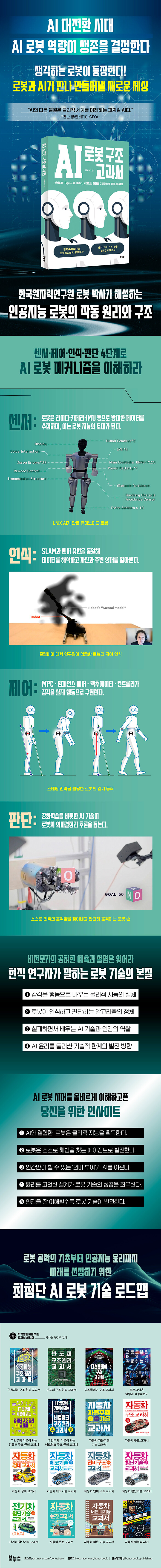 ÇöÁ÷ ·Îº¿ ¿¬±¸ÀÚ°¡ ÀΰøÁö´É ·Îº¿ÀÇ ±¸Á¶¿Í ¿ø¸®¸¦ »ó¼¼È÷ ¼³¸íÇÑ Ã¥ÀÌ´Ù. ¿£ºñµð¾Æ, Å×½½¶ó, ±¸±Û µî ±Û·Î¹ú ºòÅ×Å© ±â¾÷µéÀÌ ÁÖµµÇÏ´Â AI ·Îº¿ »ê¾÷ÀÇ Ãֽбâ¼ú Æ®·»µå´Â ¹°·ÐÀÌ°í ·Îº¿ÀÌ ¼¼»óÀ» °¨°¢Çϰí ÀÌÇØÇϸç ÇൿÇÏ´Â ¿ø¸®¸¦ °£¸íÇÏ°Ô ¼Ò°³ÇÑ´Ù.