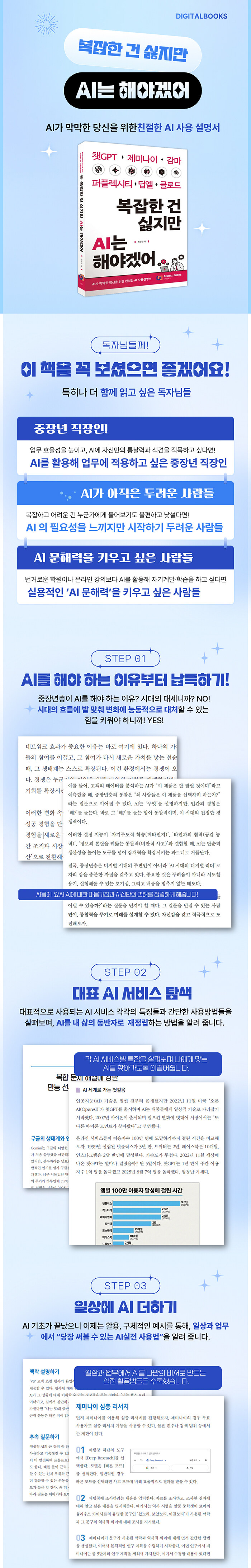 ÀÌÁ¦ ÀΰøÁö´ÉÀº ´õ ÀÌ»ó ¹Ì·¡ÀÇ ±â¼úÀÌ ¾Æ´Ï¸ç, Áö±Ý ¿ì¸®ÀÇ »îÀ» º¯È½ÃŰ´Â °¡Àå °·ÂÇÑ µµ±¸·Î ÀÚ¸® Àâ¾Ò´Ù. ÀÌ·¸µí AI ±â¼úÀÌ ºü¸£°Ô ÀÏ»óÀ¸·Î ½º¸çµå´Â ½Ã´ë, ÁßÀå³âÃþÀº º¯ÈÀÇ ¼Óµµ ¾Õ¿¡¼ ¸·¸·ÇÔ°ú µÎ·Á¿òÀ» ´À³¢±â ½±´Ù. ÀÌ¿Í °°Àº ¹®Á¦ÀǽĿ¡¼ Ãâ¹ßÇØ ÀÌ Ã¥ ¡¶º¹ÀâÇÑ °Ç ½ÈÁö¸¸ AI´Â ÇØ¾ß°Ú¾î¡·Àº ¸·¿¬ÇÏ°Ô ¡®AI´Â ¾î·Æ´Ù¡¯°í ´À³¢°í ¼±¶æ ´Ù°¡°¡Áö ¸øÇÏ´Â ÁßÀå³âÃþÀ» À§ÇØ ±âȹµÇ¾ú´Ù. AI ½Ã´ë¸¦ »ì¾Æ°¡±â À§ÇÑ »õ·Î¿î »ç°í¹æ½Ä°ú °üÁ¡ ÀüȯÀ» ¸ÕÀú Á¦½ÃÇϸç, ÁßÀå³âÃþÀÌ AI¸¦ ¡®µÎ·Á¿òÀÇ ´ë»ó¡¯ÀÌ ¾Æ´Ñ ¡®ÀλýÀÇ ÆÄÆ®³Ê¡¯·Î ¹Þ¾ÆµéÀ̵µ·Ï µ½°íÀÚ ÇÏ¿´´Ù.
