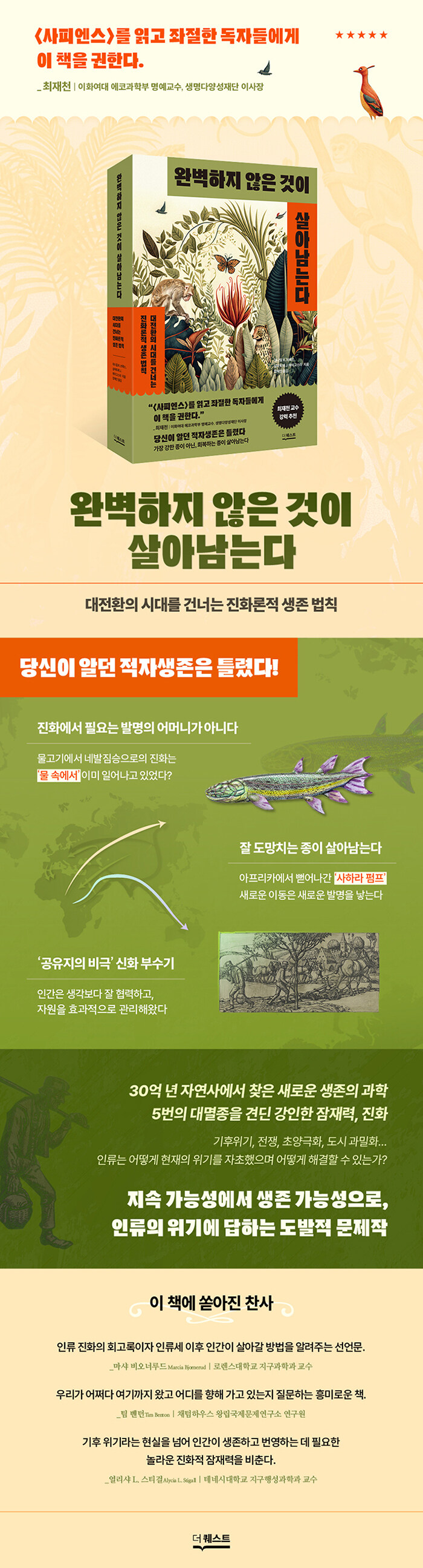 ¡®ÀûÀÚ»ýÁ¸¡¯À̶ó´Â Åë³äÀ» Á¤¸éÀ¸·Î µÚÁýÀ¸¸ç, »ì¾Æ³²´Â ÈûÀÇ º»ÁúÀ» ȸº¹·Â¿¡¼ ã´Â´Ù. ´ë´Ï¾ó R. ºê·è½º¿Í »ì¹ÙÅä·¹ J. ¿¡ÀÌ°í½ºÅ¸´Â °Ýº¯ÀÇ ÀÚ¿¬»ç ¼Ó¿¡¼ °¡Àå ¿Ïº®ÇÑ Á¾ÀÌ ¾Æ´Ï¶ó º¯È¿¡ ´ëÀÀÇÒ ¿©Áö¸¦ ³²±ä Á¾ÀÌ »ýÁ¸ÇØ¿ÔÀ½À» ÁøÈÀÇ »ç·Ê·Î Áõ¸íÇÑ´Ù.