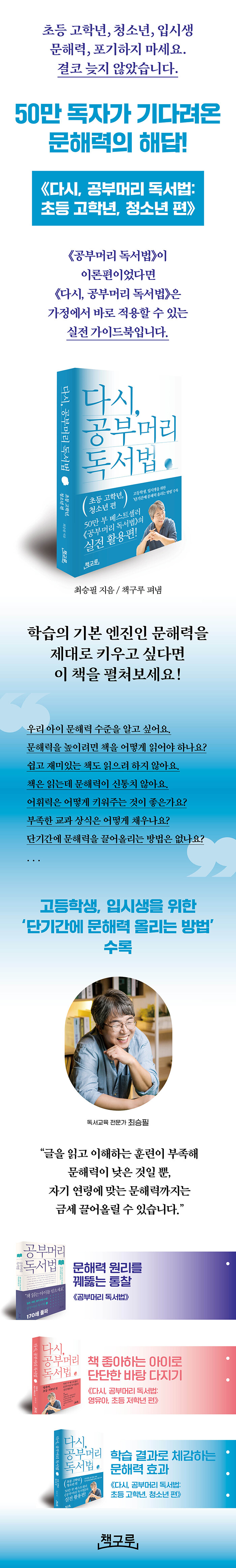 ¡º°øºÎ¸Ó¸® µ¶¼¹ý¡»À¸·Î ¡®¹®Çط¡¯ ¿Ç³À» ÀÏÀ¸Å°¸ç 50¸¸ µ¶ÀÚÀÇ ¼±ÅÃÀ» ¹ÞÀº ÃÖ½ÂÇÊ ÀÛ°¡°¡ ÃÊµî °íÇгâ, û¼Ò³âÀ» À§ÇÑ ½ÇÀü µ¶¼ Áöħ¼·Î µ¹¾Æ¿Ô´Ù. ¹®ÇØ·ÂÀÌ ÇнÀ¿¡ Á÷°áµÇ´Â ½Ã±âÀÇ µ¶¼ ¹®Á¦¸¦ Á¤È®ÇÏ°Ô Å¸°ÝÇÏ´Â ¡º´Ù½Ã, °øºÎ¸Ó¸® µ¶¼¹ý: ÃÊµî °íÇгâ, û¼Ò³â Æí¡»ÀÌ´Ù. ÃÊµî °íÇгâ, û¼Ò³â±â´Â µ¶¼¸¦ ³õ´Â ½Ã±â´Ù. ½Ã°£ÀûÀ¸·Î, ½É¸®ÀûÀ¸·Î Ã¥ ÀÐÀ» ¿©À¯°¡ ¾ø±â ¶§¹®ÀÌ´Ù. ±×·¯³ª ±× ¾î´À ¶§º¸´Ùµµ ¹®ÇØ·ÂÀÌ Àý½ÇÈ÷ ÇÊ¿äÇÑ ½Ã±âÀ̱⵵ ÇÏ´Ù. ±× ³Á¦¸¦ ÇöÀå¿¡¼ Á÷Á¢ µ¹ÆÄÇØ ¿Â ÃÖ½ÂÇÊ ÀÛ°¡´Â ½ÇÀü µ¥ÀÌÅ͸¦ ¹ÙÅÁÀ¸·Î Á¤¹ÐÇÑ ÇØ°áÃ¥À» Á¦½ÃÇÑ´Ù.