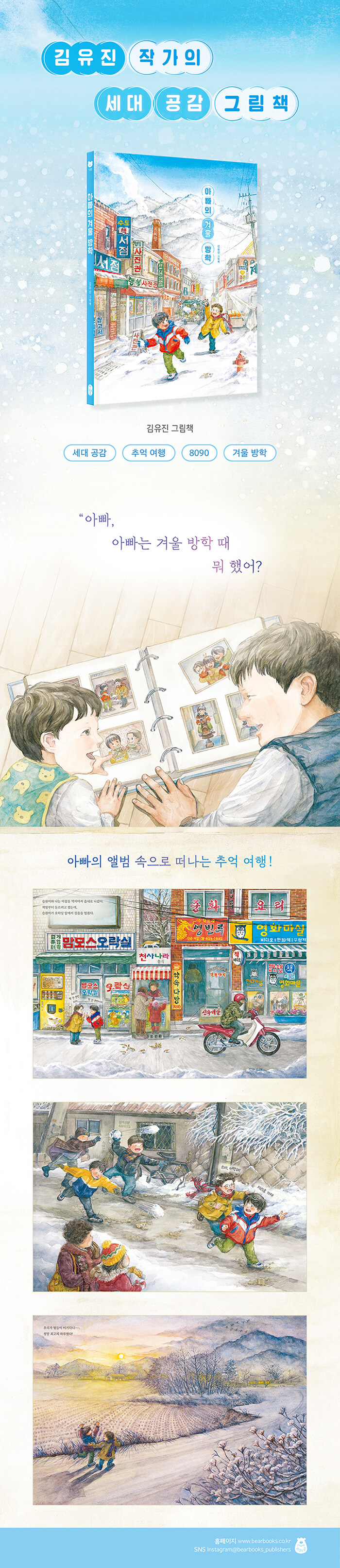 °Ü¿ï ¹æÇÐÀ» ¸ÂÀº ¾ÆÀÌ´Â ¾Æºü¿Í ÇÔ²² ÇҾƹöÁö ´ì¿¡ °¥ äºñ¸¦ ÇÑ´Ù. ¡°°Å±ä ³»°¡ º¼ Ã¥µµ ¾ø°í ¸¸È ä³Îµµ ¾È ³ª¿À°í ½É½ÉÇѵ¥¡¦¡¦.¡± ¾ÆÀÌÀÇ ¸»¿¡ ¾Æºü´Â ¾î¸± Àû »çÃ̵éÀ̶û ÇÏ´ø ³îÀ̸¦ ¾Ë·ÁÁÙ Å×´Ï Å«¾Æºü µþ ÁöÀ¯¿Í ³î¶ó°í ÇÑ´Ù. ±×·±µ¥ ¾ÆºüÀÇ ¡®»çÃÌ¡¯À̶ó´Â ¸»¿¡ ¾ÆÀÌÀÇ ´«ÀÌ µ¿±×·¡Áø´Ù. ¡°¾Æºüµµ »çÃÌÀÌ ÀÖ¾ú¾î?¡± Å«¾Æºü¾ß ¸íÀý¿¡¶óµµ ¾ó±¼À» º»´ÙÁö¸¸ ¾ÆºüÀÇ »çÃÌÀº ¸¸³ª º» ÀûÀÌ ¾ø´Â °Í °°´Ù. ¡°±×·³. »çÁø º¸¿© ÁÙ±î?¡± ¾Æºü´Â ¾î¸± Àû Ãß¾ïÀÌ °¡µæ ´ã±ä ¾Ù¹üÀ» ÆîÄ¡°í, ¾Æºü¿Í ¾ÆµéÀº °ú°Å·Î ½Ã°£ ¿©ÇàÀ» ¶°³´Ù. µüÁöÄ¡±â, ÀüÀÚ¿À¶ô, ¸¸È ÀâÁö, ´«½Î¿ò, ´«½ä¸Å±îÁö¡¦¡¦. ÀÛ°¡ÀÇ ÀüÀÛ ¡¶¾ö¸¶ÀÇ ¿©¸§ ¹æÇС·°ú ´õºÒ¾î ¾î¸° ½ÃÀý Ãß¾ïÀ» ¾ÆÀÌ¿Í ÇÔ²² ³ª´©¸ç °ø°¨´ë¸¦ Çü¼ºÇÒ ¼ö ÀÖ´Â ±×¸²Ã¥ÀÌ´Ù.