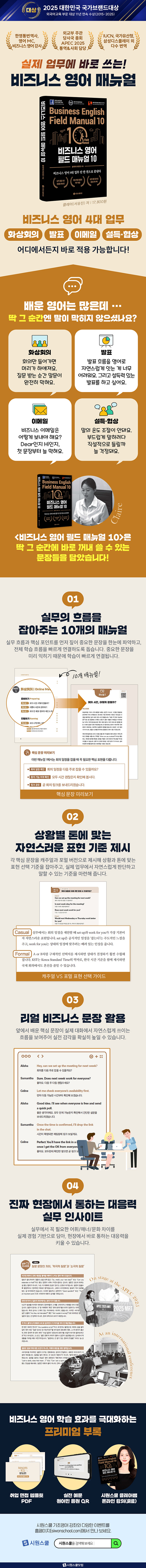 ÀÌ Ã¥Àº ºñÁî´Ï½º ¿µ¾î Ç¥ÇöÀ» ´Ü¼øÈ÷ ³ª¿ÇÏ´Â ¹æ½ÄÀÌ ¾Æ´Ï¶ó, ¾÷¹«°¡ ½ÇÁ¦·Î ÁøÇàµÇ´Â È帧 ±×´ë·Î¸¦ 10°³ÀÇ ÇÙ½É ´Ü°è·Î ¾ÐÃàÇØ ´ãÀº ¿Ï°áÇü ¸Å´º¾óÀÔ´Ï´Ù. ÇÑ ¾÷¹«°¡ ½ÃÀÛµÇ¾î ³¡³¯ ¶§±îÁöÀÇ ½ÇÁ¦ Ç÷οì Àüü¸¦ 10°³ÀÇ ¸Å´º¾ó¿¡ ´ã¾Æ ½ÇÁ¦ ¾÷¹« ÁøÇà ¼ø¼ ±×´ë·Î ÀÍÈú ¼ö ÀÖµµ·Ï ¼³°èÇß½À´Ï´Ù. Ã¥ÀÇ ¼ø¼¸¦ µû¶ó°¡±â¸¸ ÇØµµ ÇϳªÀÇ ¾÷¹«¸¦ óÀ½ºÎÅÍ ³¡±îÁö ¿Ï¼ºÇØ º¸´Â ½ÇÀü ÇнÀ °æÇèÀ» ¾òÀ» ¼ö ÀÖÀ¸¸ç, ¾÷¹«¸¦ ü°èÀûÀ¸·Î ¹è¿ì°í ½ÍÀº Á÷ÀåÀο¡°Ô ƯÈ÷ È¿°úÀûÀÎ ±¸Á¶ÀÔ´Ï´Ù.