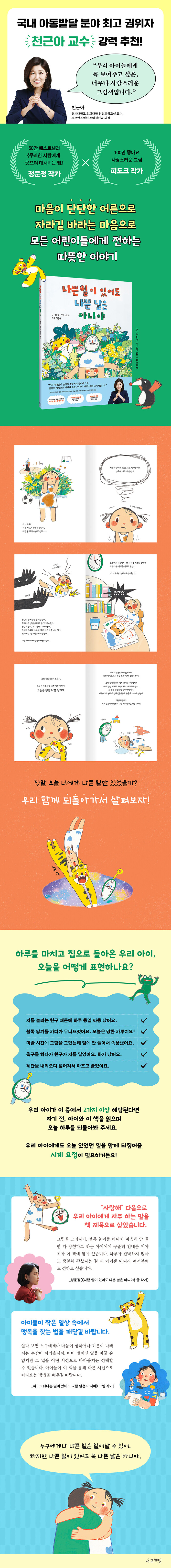 ÀÌ Ã¥ÀÇ °¨¼ö¸¦ ¸ÃÀº õ±Ù¾Æ ±³¼ö´Â ¡¶³ª»Û ÀÏÀÌ À־ ³ª»Û ³¯Àº ¾Æ´Ï¾ß¡·°¡ ÀÌ·¯ÇÑ ÁöÁ¡À» ¼¶¼¼ÇÏ°Ô Â¤¾î³»´Â ±×¸²Ã¥À̶ó°í ¸»ÇÕ´Ï´Ù. ÀÌ Ã¥Àº ¾ÆÀÌÀÇ ³ª»Û °¨Á¤À» ºÎÁ¤ÇÏÁö ¾ÊÀ¸¸é¼µµ ÇϷ縦 ÀÔüÀûÀ¸·Î ¹Ù¶óº¼ ¼ö ÀÖ°Ô Çϸç, ´Ù¾çÇÑ °¨Á¤ ¼Ó¿¡¼ ±ÕÇüÀ» ã´Â ÈûÀ» ÀÚ¿¬½º·´°Ô ±æ·¯ÁÝ´Ï´Ù. ¶ÇÇÑ, ÀÌ Ã¥ÀÌ ºÎÁ¤ÀûÀÎ °¨Á¤¿¡¸¸ ¸Ó¹«¸£Áö ¾Ê°í ½Ã¼±À» ´Þ¸®Çϸé ÇÏ·çÀÇ ±â¾ïÀÌ ´Þ¶óÁú ¼ö ÀÖ´Ù´Â ¸Þ½ÃÁö¸¦ ¾ÆÀÌÀÇ ´«³ôÀÌ¿¡¼ Àü´ÞÇÕ´Ï´Ù.