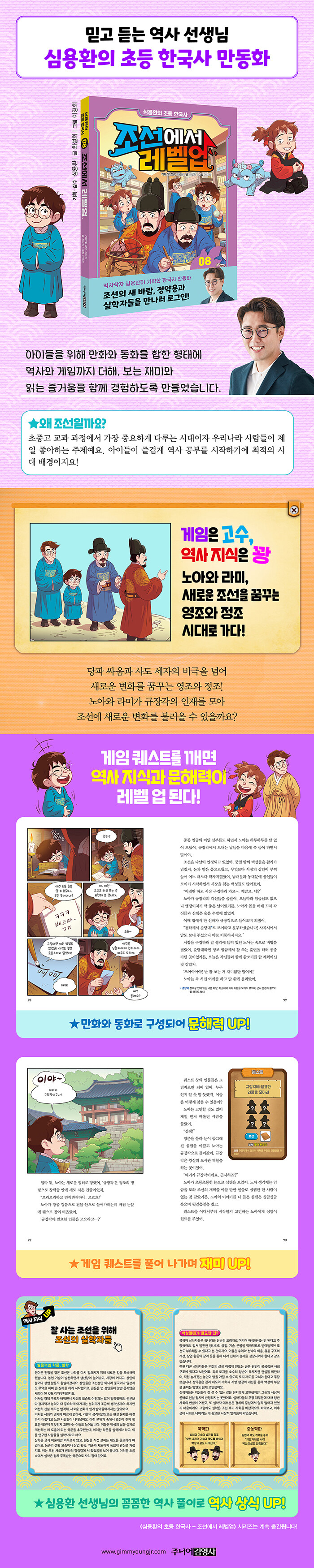 °ÔÀÓ Äù½ºÆ®¸¦ ±ú¸ç Á¶¼± ¿ª»ç¸¦ ¹è¿ì´Â Ãʵî Çѱ¹»ç ¸¸µ¿È´Ù. ¿ª»çÇÐÀÚ ½É¿ëȯÀÌ ±âȹÇÑ ¡¸½É¿ëȯÀÇ Ãʵî Çѱ¹»ç - Á¶¼±¿¡¼ ·¹º§¾÷¡¹ ½Ã¸®Áî·Î, ±³°ú °úÁ¤¿¡¼ Áß¿äÇÏ°Ô ´Ù·ç´Â Á¶¼± ½Ã´ë¸¦ Á߽ɿ¡ ³õ¾Ò´Ù. ±íÀÌ ÀÖ´Â °ÀÇ¿Í ´ëÁß °¿¬À¸·Î ¾Ë·ÁÁø ÀúÀÚÀÇ ³ëÇϿ츦 ´ã¾Ò´Ù.