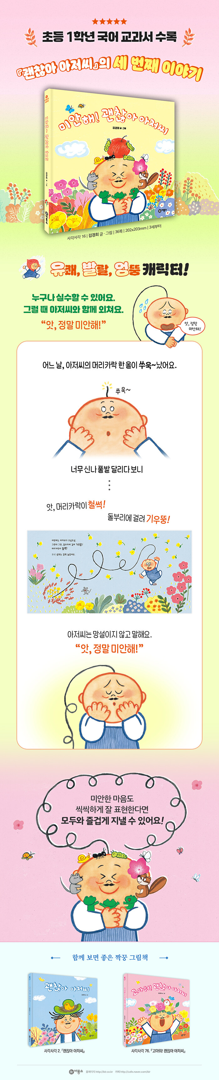 ±àÁ¤ÀÇ ÈûÀ» ½Ç¾î ÁÖ´Â ¹à°í Èï°Ü¿î ±×¸²Ã¥¡º±¦Âú¾Æ ¾ÆÀú¾¾¡»ÀÇ ÈļÓÀÛ¡º¹Ì¾ÈÇØ! ±¦Âú¾Æ ¾ÆÀú¾¾¡»°¡ ¢ßºñ·æ¼Ò¿¡¼ Ãâ°£µÇ¾ú´Ù. ¾î¶² ÀÏÀÌ ´ÚÃĵµ¡°¿À, ±¦ÂúÀºµ¥?¡±¸¦ ¹Ýº¹ÇÏ¸é¼ ÃʱàÁ¤ ij¸¯ÅÍÀÇ ÈûÀ» ¼±º¸¿´´ø¡º±¦Âú¾Æ ¾ÆÀú¾¾¡»´Â À¯¾Æ»Ó¸¸ ¾Æ´Ï¶ó Ãʵî, ¼ºÀÎ µ¶ÀÚ±îÁö ¾Æ¿ì¸£¸ç Æø³ÐÀº µ¶ÀÚÃþÀÇ È£ÀÀÀ» ¾ò¾î 10¸¸ ºÎ ÀÌ»óÀÌ ÆÈ·È´Ù. ƯÈ÷ 2022³â Ãֽа³Á¤ Ãʵî 1Çг⠱¹¾î ±³°ú¼¿¡ ¼ö·ÏµÇ¾î ´õ ¸¹Àº ¾î¸°À̵鿡°Ô »ç¶û¹Þ°í ÀÖÀ¸¸ç, µÎ ¹øÂ° À̾߱⡺°í¸¶¿ö! ±¦Âú¾Æ ¾ÆÀú¾¾¡»¿¡¼´Â °¨»çÀÇ °¡Ä¡, À̹ø ½Å°£¡º¹Ì¾ÈÇØ! ±¦Âú¾Æ ¾ÆÀú¾¾¡»¿¡¼´Â ¹Ì¾ÈÇØ¶ó°í ¸»ÇÒ ¼ö ÀÖ´Â ¿ë±â¿Í ¼ö¿ëÀÇ Åµµ¿¡ ´ëÇØ ¾Ë·Á ÁØ´Ù.