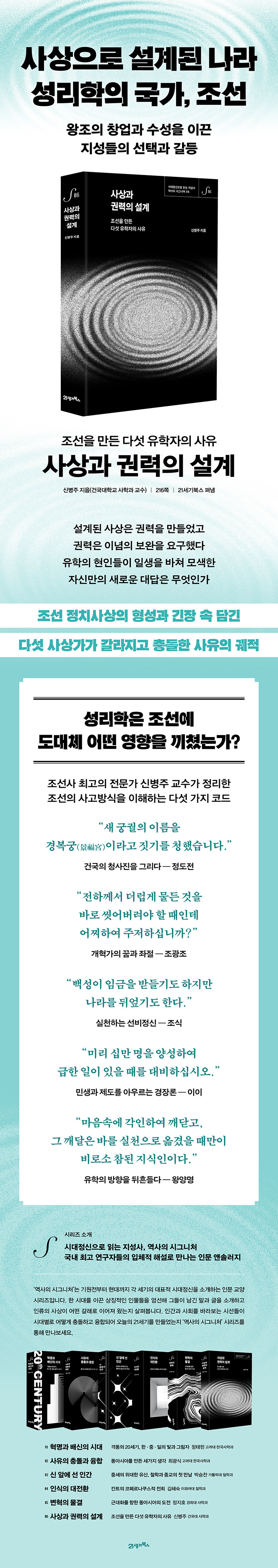 ¡®¿ª»çÀÇ ½Ã±×´Ïó¡¯ ½Ã¸®ÁîÀÇ ¿©¼¸ ¹øÂ° Ã¥ÀÎ ¡º»ç»ó°ú ±Ç·ÂÀÇ ¼³°è¡»´Â Á¶¼±À̶ó´Â ±¹°¡°¡ ¾î¶² »çÀ¯ À§¿¡¼ ¼º¸³ÇÏ°í ¿î¿µµÇ¾ú´ÂÁö¸¦ »ç»ó»çÀÇ °üÁ¡¿¡¼ »ìÆìº»´Ù. °í·ÁÀÇ ¸ô¶ô°ú »õ·Î¿î ¿ÕÁ¶ÀÇ Åº»ýÀº ´Ü¼øÇÑ Á¤±Ç ±³Ã¼°¡ ¾Æ´Ï¶ó, ±¹°¡¸¦ ¹«¾ùÀ¸·Î Á¤´çÈÇÒ °ÍÀΰ¡¶ó´Â ±Ùº»ÀûÀÎ Áú¹®À» µ¿¹ÝÇß´Ù. ¼º¸®ÇÐÀ» ±¹½Ã·Î »ïÀº Á¶¼±Àº Á¦µµ¿Í À±¸®, ÅëÄ¡ ¿ø¸®¸¦ »çÀ¯ÀÇ ¾ð¾î·Î À籸¼ºÇÏ¸ç »õ·Î¿î ±¹°¡ Áú¼¸¦ ¼¼¿ì°íÀÚ Çß´Ù.