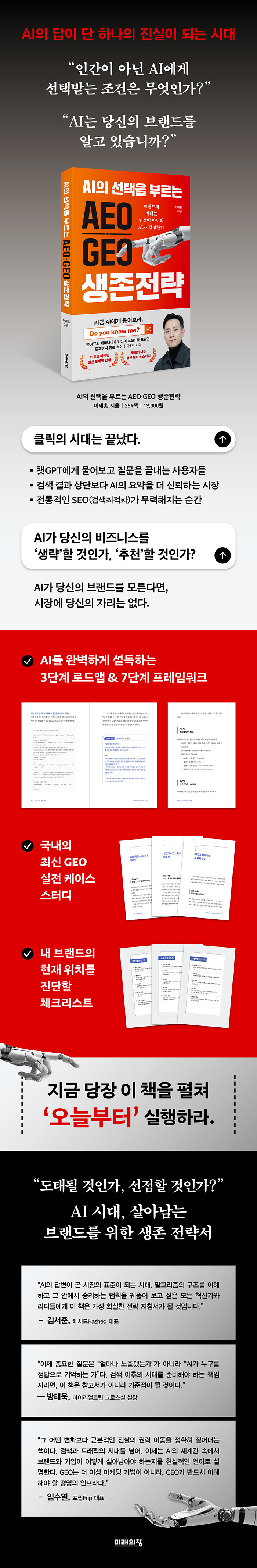 ¡ºAEO¡¤GEO »ýÁ¸Àü·«¡»Àº Ŭ¸¯°ú °Ë»öÀÇ Á¾¸»À» ¼±¾ðÇϸç, »õ·Î¿î ½Ã´ë¿¡ »ì¾Æ³²±â À§ÇÑ °¡Àå °·ÂÇÏ°í ½ÇÁúÀûÀÎ ÁöħÀ» Á¦½ÃÇÑ´Ù. µ¥ÀÌÅÍ ÇнÀ¿¡ µû¸¥ Áø½ÇÀÇ À籸¼ººÎÅÍ AI¸¦ ¿Ïº®ÇÏ°Ô ¼³µæÇÏ´Â 3´Ü°è ·Îµå¸Ê, ºê·£µå°¡ AI¿¡°Ô ÀνĵǴ ½ÇÀü GEO ÇÁ·¹ÀÓ¿öÅ©±îÁö. ½ÂÀÚµ¶½ÄÀÇ ·êÀÌ Áö¹èÇÏ´Â »õ·Î¿î ÀüÀå¿¡¼ ½Â¸®Çϱâ À§ÇÑ µ¶º¸ÀûÀÎ ¹«±â¸¦ ³¹³¹ÀÌ °ø°³ÇÑ´Ù.