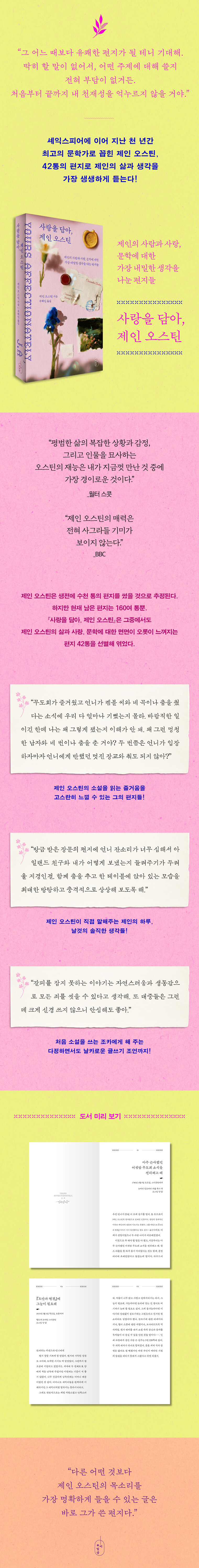 ¡º¿À¸¸°ú Æí°ß¡», ¡ºÀ̼º°ú °¨¼º¡», ¡º¿¡¸¶¡» µîÀÇ ¼Ò¼³·Î Ãâ°£ÇÑ Áö 200³âÀÌ Èǽ ³Ñ´Â Áö±Ý±îÁöµµ ¶ß°Ì°Ô »ç¶û¹Þ´Â ÀÛ°¡, Á¦ÀÎ ¿À½ºÆ¾ÀÇ »î°ú »ý°¢À» °í½º¶õÈ÷ ¿³º¼ ¼ö ÀÖ´Â ¼°£Áý ¡º»ç¶ûÀ» ´ã¾Æ, Á¦ÀÎ ¿À½ºÆ¾¡»ÀÌ Ãâ°£µÈ´Ù. ±×µ¿¾È ÀÛǰÀ» ÅëÇØ ´À³¥ ¼ö ÀÖ¾ú´ø 19¼¼±â ¿µ±¹ÀÇ »çȸ»ó°ú ¿©¼ºÀÇ »î¿¡ ´ëÇÑ ¼ÖÁ÷ÇÏ°í ³ÃöÇÑ ¹¦»ç¿Í Àΰ£ÀÇ ½É¸®¿Í °ü°è¿¡ ´ëÇÑ ¹ø¶àÀÌ´Â ÅëÂû·ÂÀ» À¯ÄèÇϸ鼵µ ¿¹¸®ÇÏ°Ô ±×·Á³½ Á¦ÀÎ ¿À½ºÆ¾ÀÇ Å¹¿ùÇÔÀÌ, Á¦ÀÎÀÌ ½º½º·ÎÀÇ ÀÏ»óÀ» ¹¦»çÇÏ´Â ÆíÁö¿¡¼µµ ¿©½ÇÈ÷ µå·¯³´Ù.