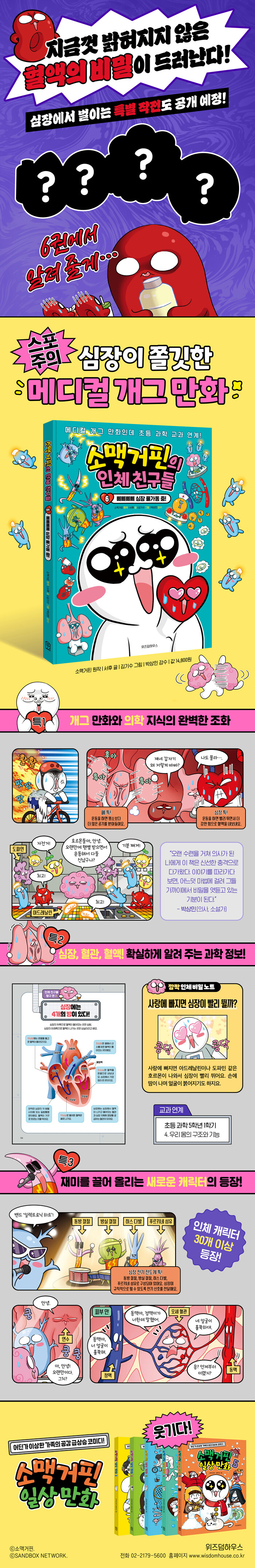 ÃÑ Á¶È¸¼ö ¾à 6,900¸¸ ȸÀÇ Àα⠵¿¿µ»ó ¡®ÀÎü Ä£±¸µéÀÇ ÇϷ硯¸¦ ¹ÙÅÁÀ¸·Î ÇÑ ¡´¼Ò¸Æ°ÅÇÉÀÇ ÀÎü Ä£±¸µé¡µ ½Ã¸®Áî´Â Ã¥¸¸ÀÇ ¿À¸®Áö³Î ½ºÅ丮·Î ¸Å ±Ç »õ·Î¿î ÀÎü ij¸¯ÅͰ¡ µîÀåÇÑ´Ù. 6±Ç¿¡¼´Â Ç÷Àå, ÀûÇ÷±¸, ¹éÇ÷±¸, Ç÷¼ÒÆÇ µî Ç÷¾×ÀÇ ±¸¼º ¼ººÐÀº ¹°·Ð, µ¿¸Æ, Á¤¸Æ, ½ÉÀå Àü±â Àüµµ°è µî ¿ì¸® ¸öÀÇ ¼øÈ¯ ±â°üµéÀÌ °¢°¢ÀÇ Æ¯Â¡À» »ì¸° ij¸¯ÅÍ·Î µîÀåÇØ °ü·ÃµÈ ÀÎü Áö½ÄÀ» ÇÑÃþ ´õ Ä£±ÙÇÏ°Ô Àü´ÞÇÑ´Ù. ´õºÒ¾î ³» ¼ÕÀÇ Ç÷°üÀ» ã°í ¸Æ¹ÚÀ» Àç º¸´Â Ȱµ¿ Äڳʸ¦ ÅëÇØ ³» ¸ö¿¡ ´ëÇÑ ÀÌÇØµµ¸¦ ³ôÀÌ´Â ÇÑÆí, ´Ù¸¥ ±×¸² ã±â ÄڳʷΠÀç¹Ì±îÁö Àâ¾Ò´Ù.